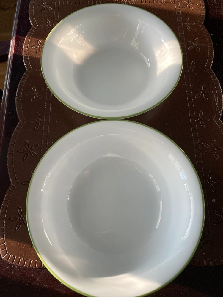 1000+Set of 6 Corelle bowls with a green rim.