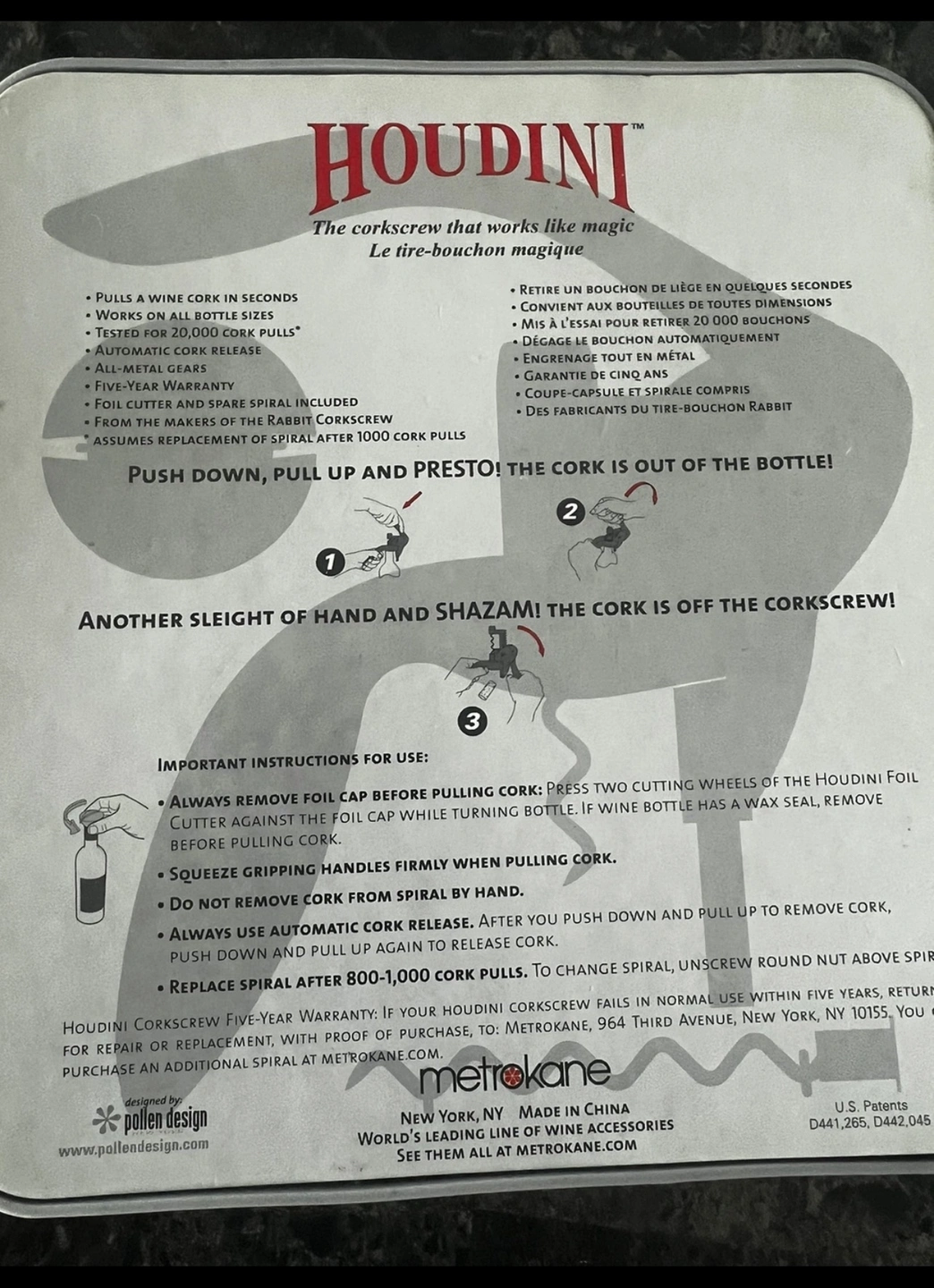 1000+Brand new. Black Houdini Lever Corkscrew with Foil Cutter. Comes with spare spiral. Pick up close to Yorkdale mall #Christmas gift #thrifty finds #under $30