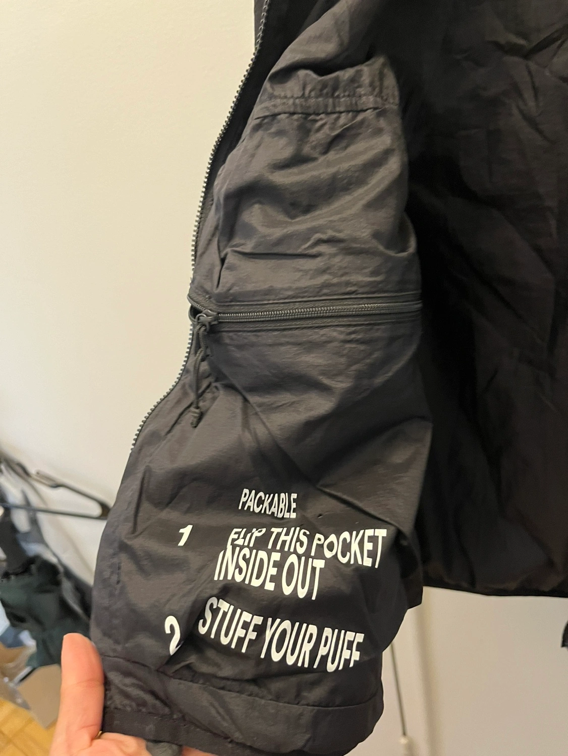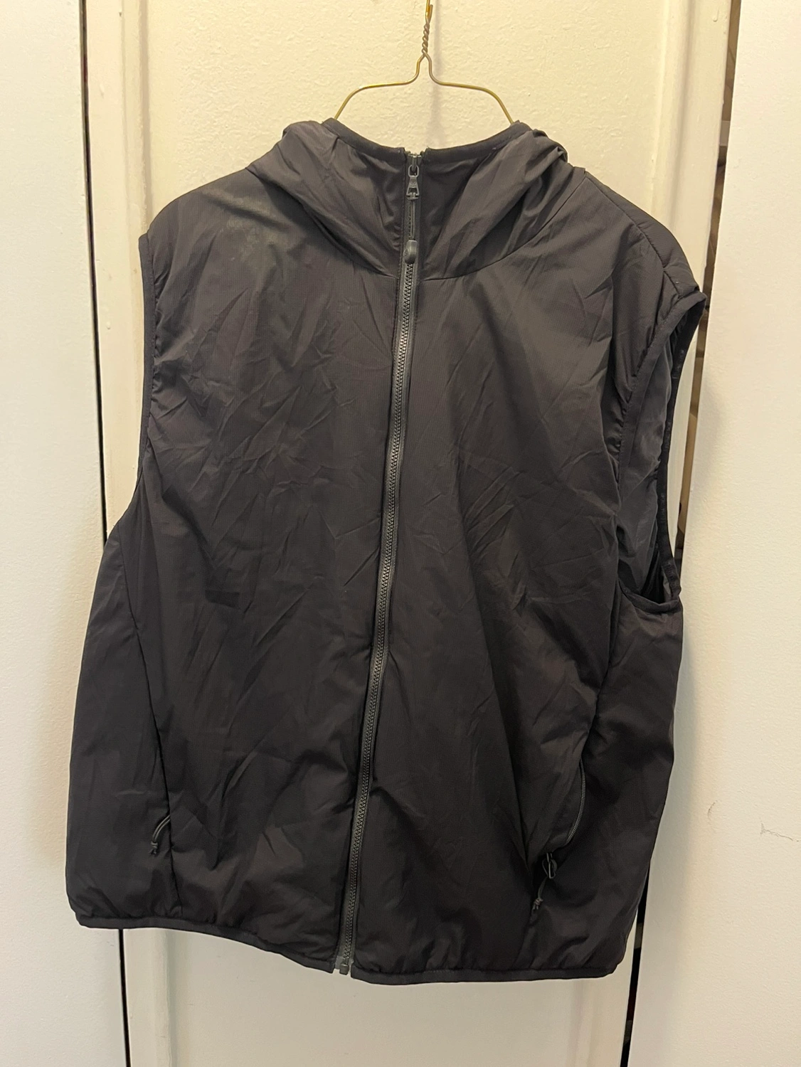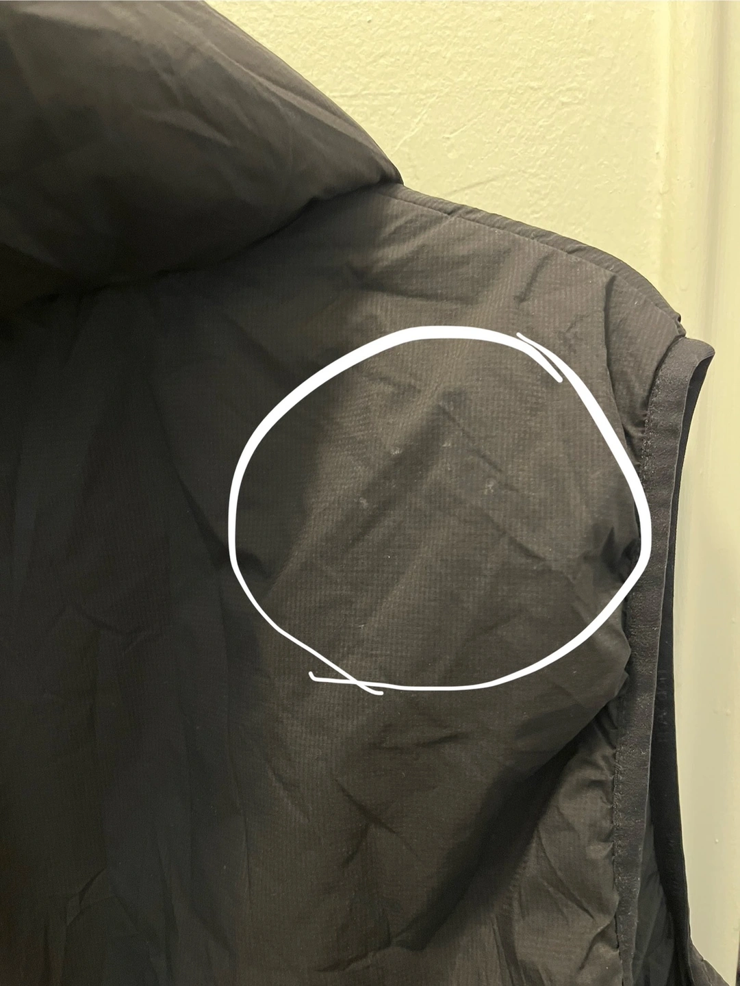 This puffer is constructed with innovative fabric from Japan and contains 100% vegan down Size large from Aritzia Good condition with a few minor white marks on the back, I’m sure it can be washed off