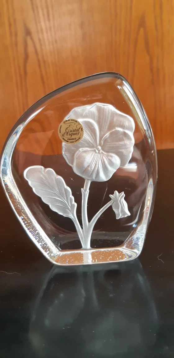 828Crystal paperweight featuring a carved pansy flower Made by "Cristal d'Arques" of France Brand new