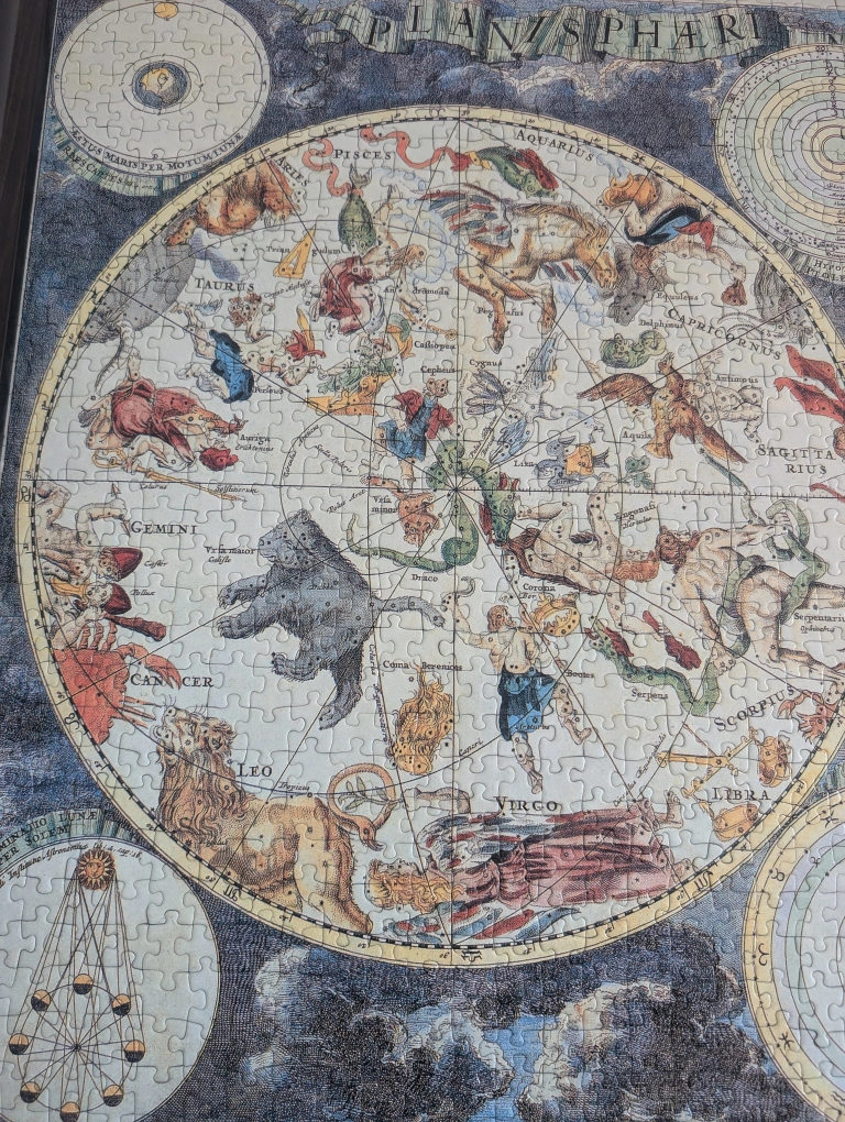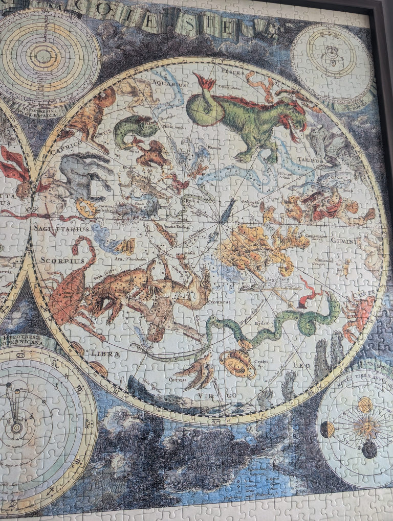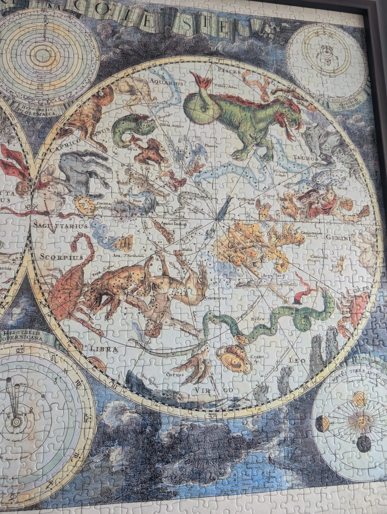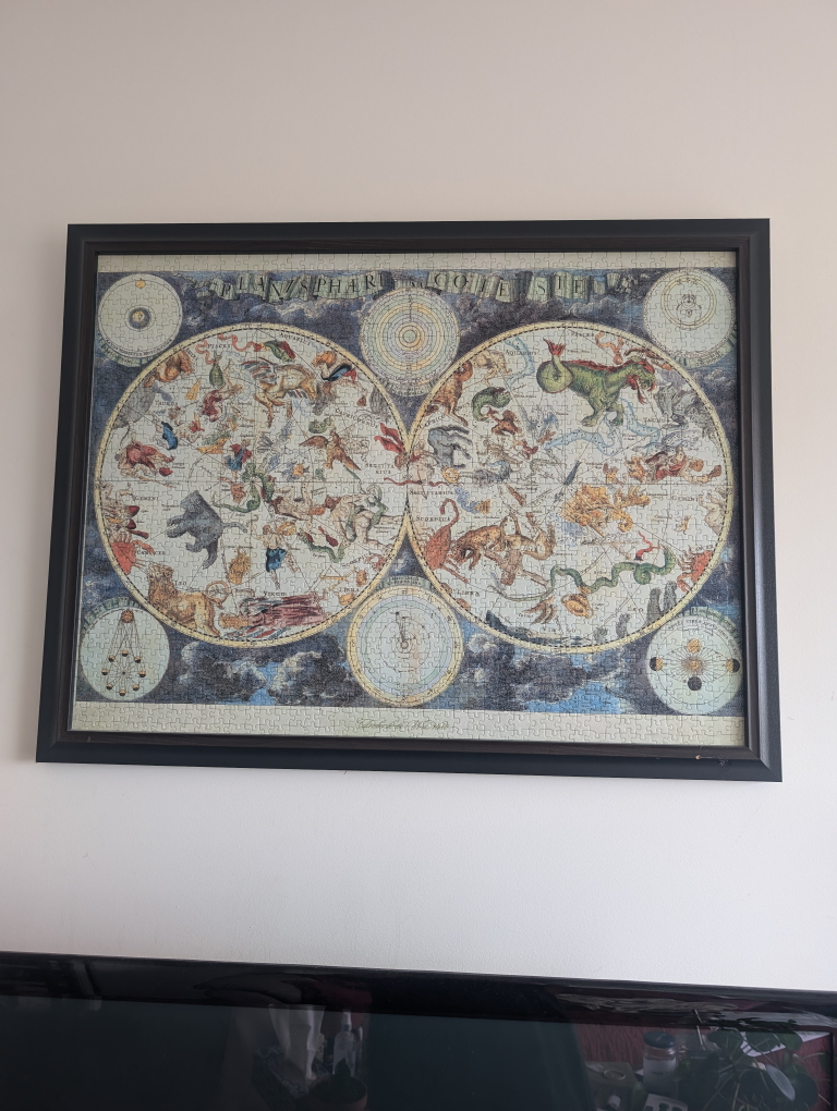 Beautiful framed puzzle of the constellations/zodiacs with names and planets.