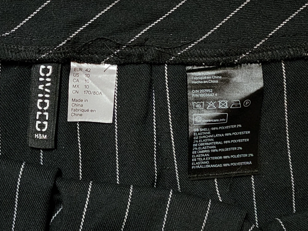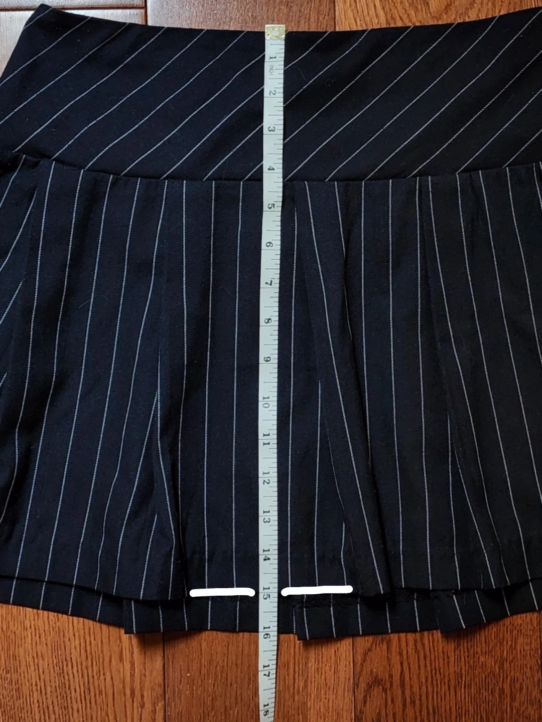 Cute lil pleated mini skirt from H&M. Black with thin white strips. Size 10. I would say it fits like a medium because it is not stretchy so it could be too big on a petite body. I like to tuck my sweater into the waist line because there is enough space for that. It has a zipper and clasp closure on the left side. I've worn it a few times but it's in really good condition!