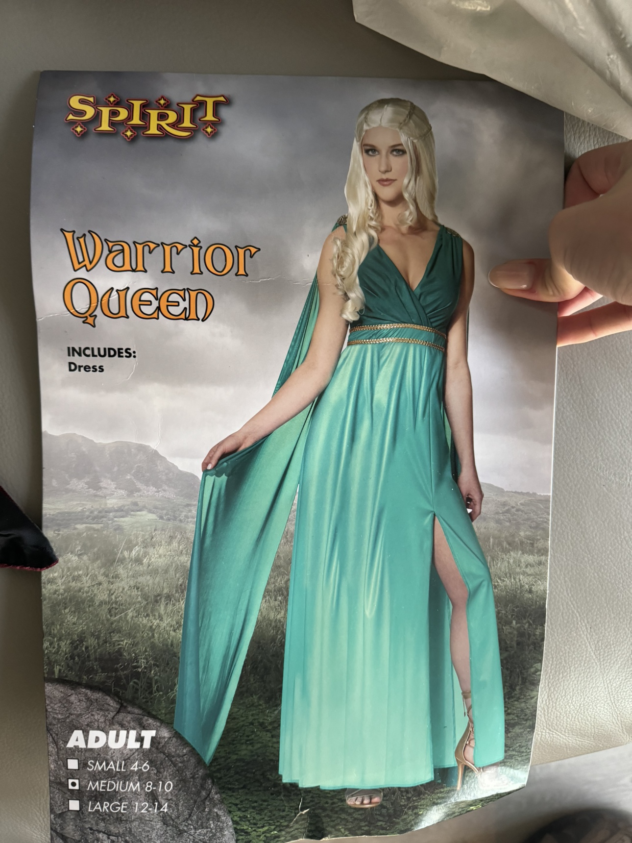 Buy & SellWarrior Queen Dress (Halloween)Warrior Queen Dress (Halloween)$30Warrior Queen - Daenerys Targaryen dress. Worn only once! Great condition! Matching wig is also available on my page.ConditionLike newSizeMWHERE TO MEETBanknote Bar CorktownView MapSELLERverifiedIloOld Toronto22813 reviews1 chats·2 favorites·58 viewsSEND CHAT TO SELLERHi Ilo! I’m interested in your listing.Hi Ilo! I’m interested in your listing.Get the Karrot app to chatSign In to chat