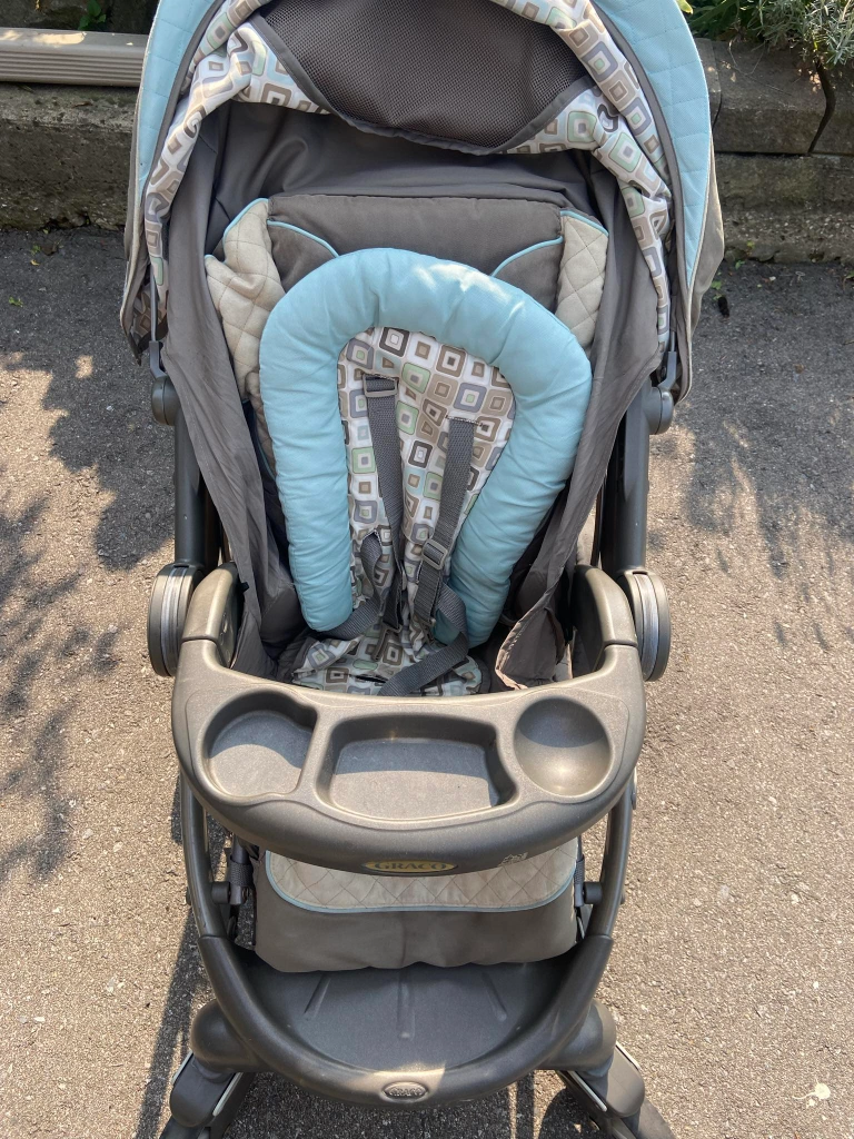 Stroller in good condition. fully functional. Includes parent cup holder. Can be used as a travel system. It comes with the tray for the child. Includes a storage basket underneath. Buyer to pick up in person. easy to fold . near lansdown subway.