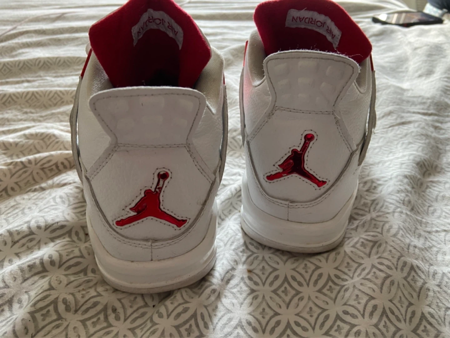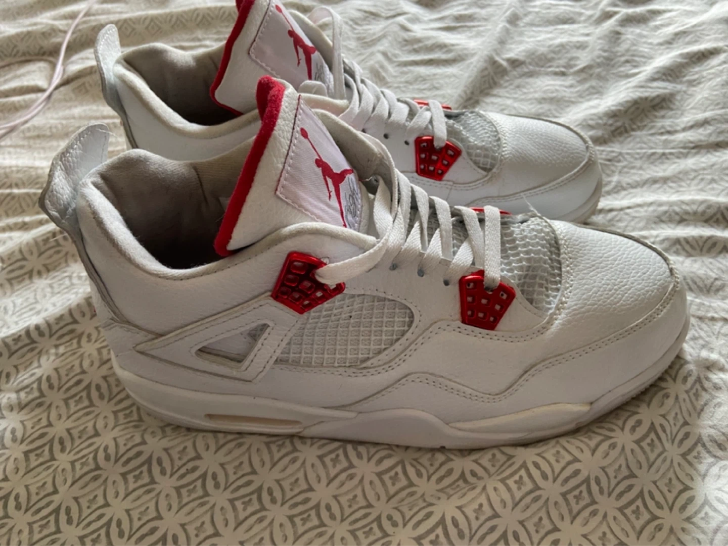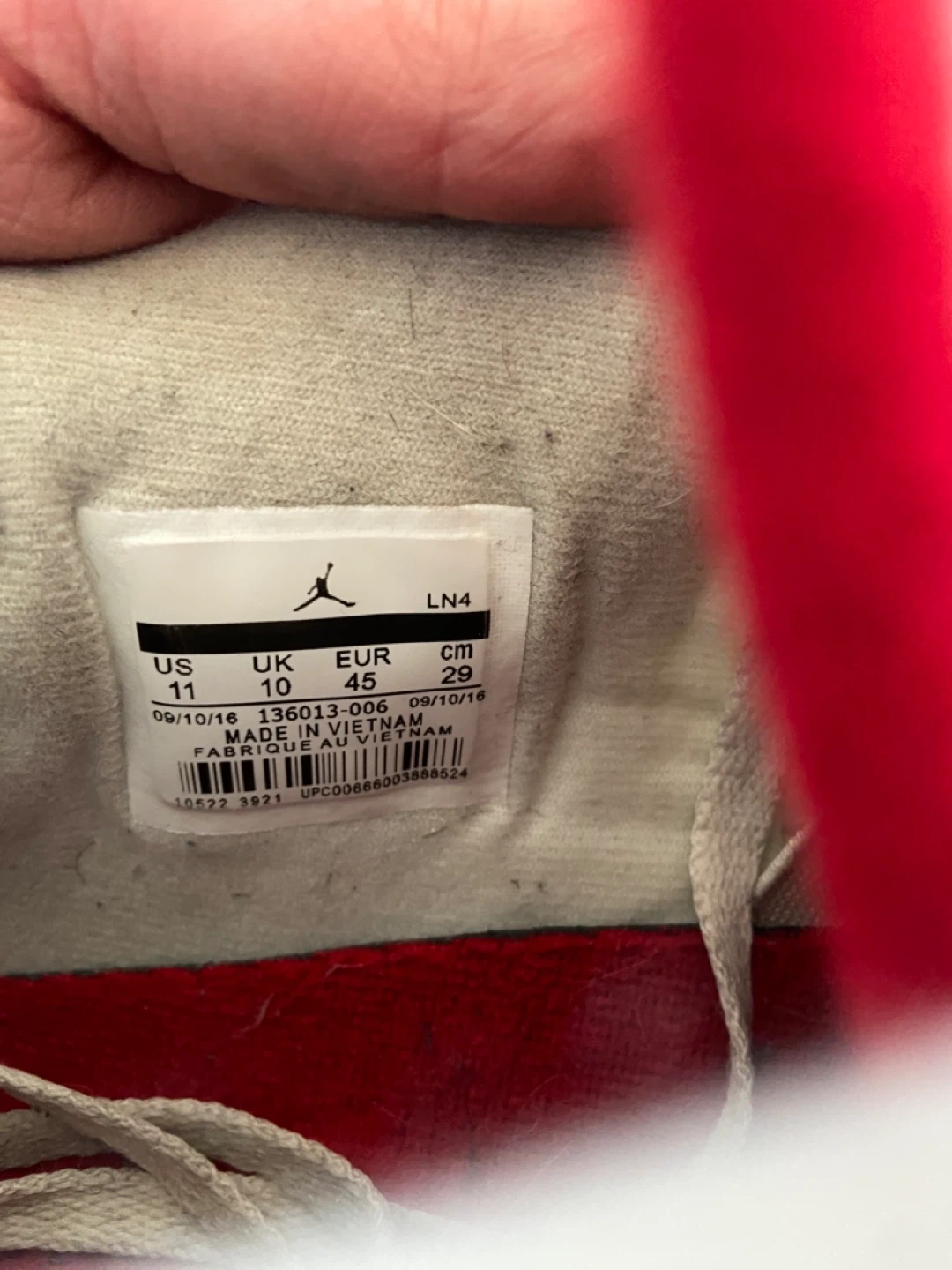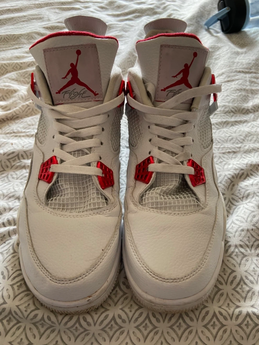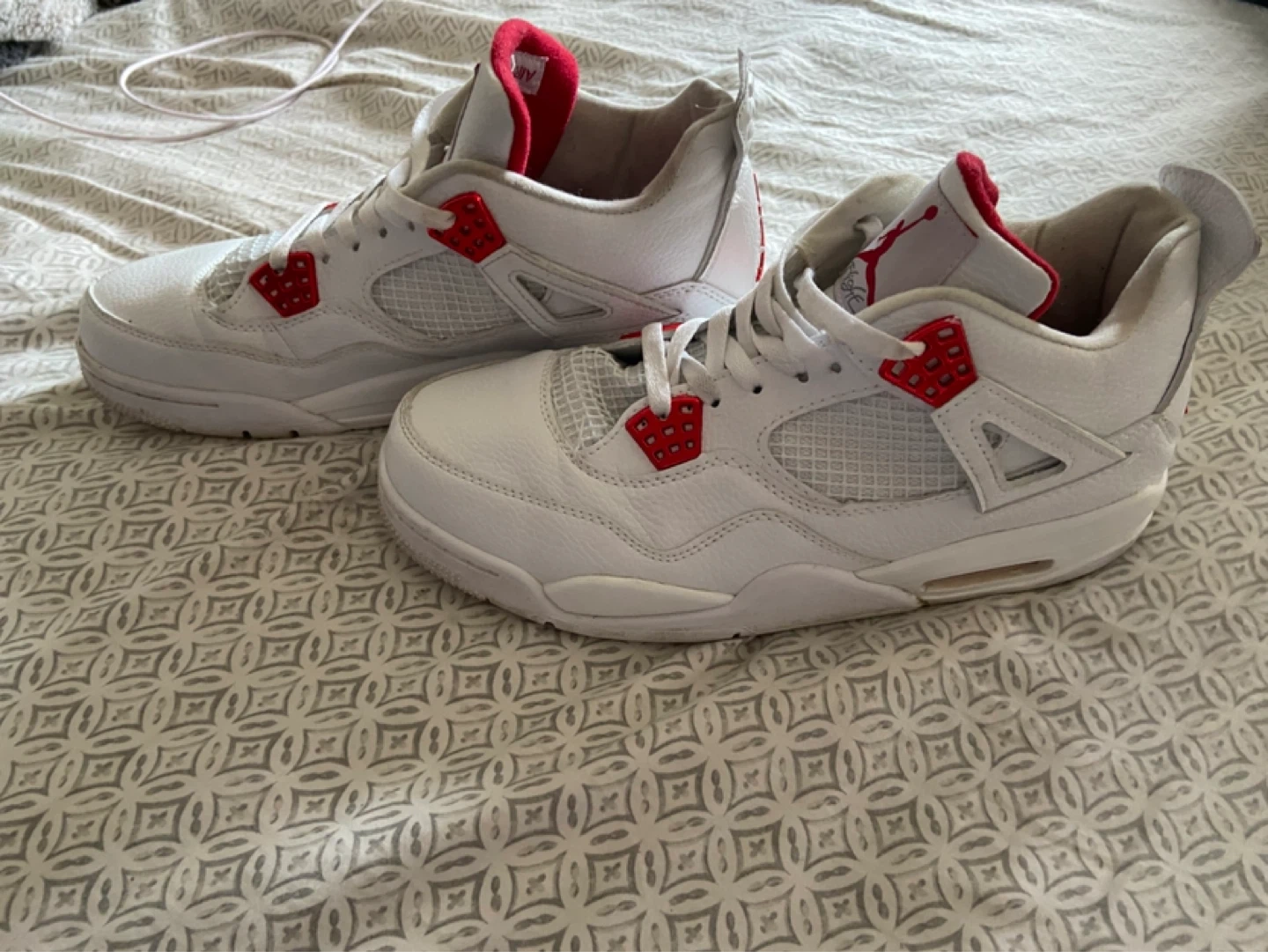 Selling a pair of Air Jordan 4 Retro sneakers. Men's US size 11. White and red colourway. Made in Vietnam, dated 09/10/16. Great for collectors or everyday wear!