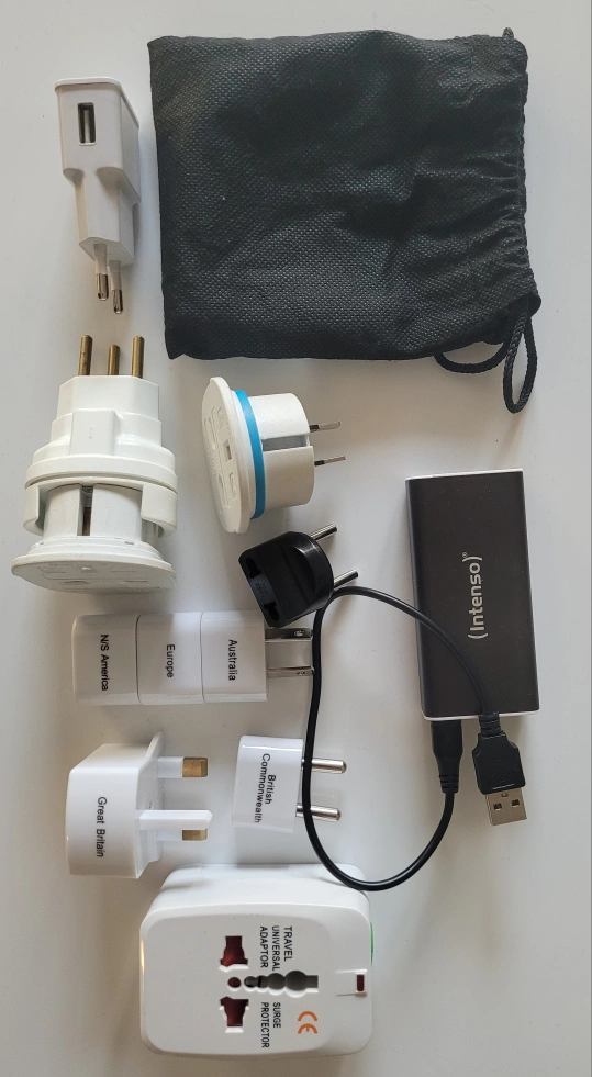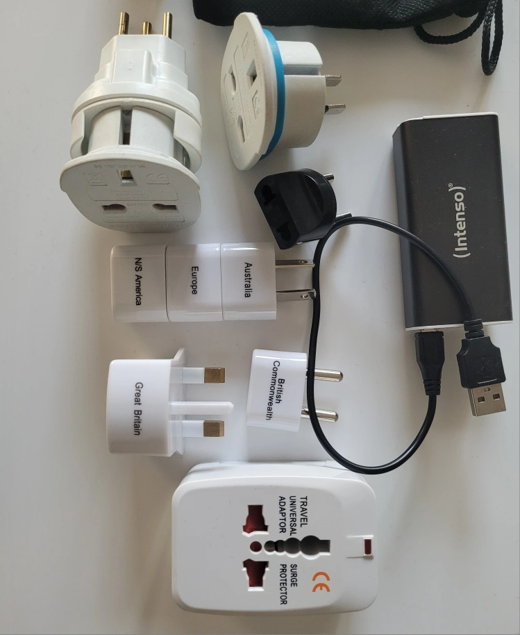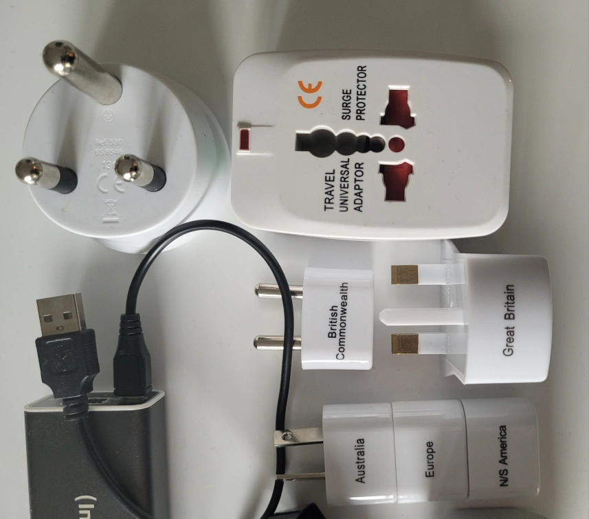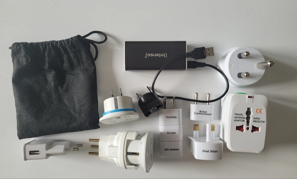 Assorted travel adaptors and convertors for use in the UK, USA, South America, South Africa and Australia.