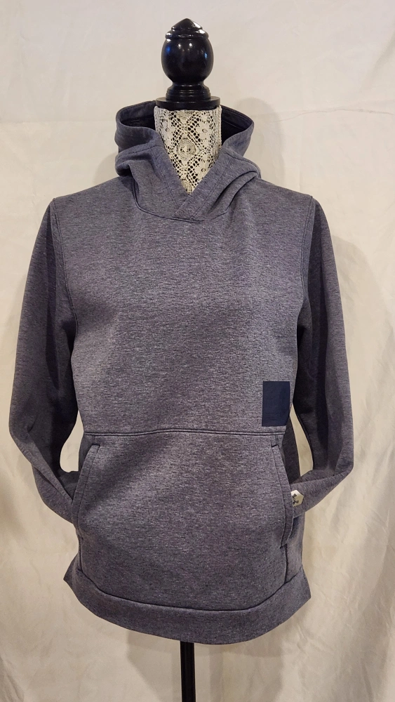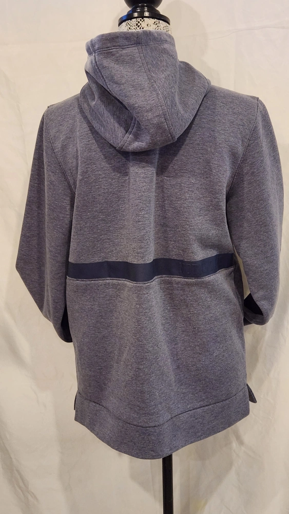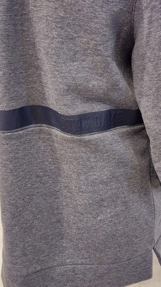 Grey Under Armour Notre Dame hoodie. Two pockets on the front of the hoodie.