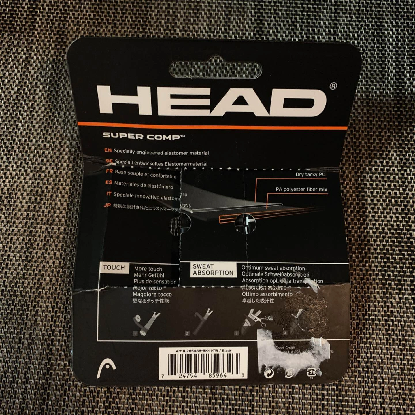 2 unused badminton racquet grip tape. Sweat absorption material, and easy to apply! Packaging has wear and tear from being in a ziploc bag for a while.