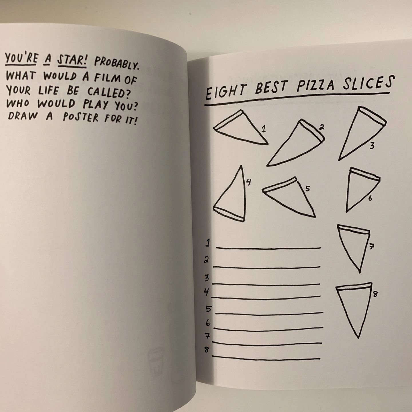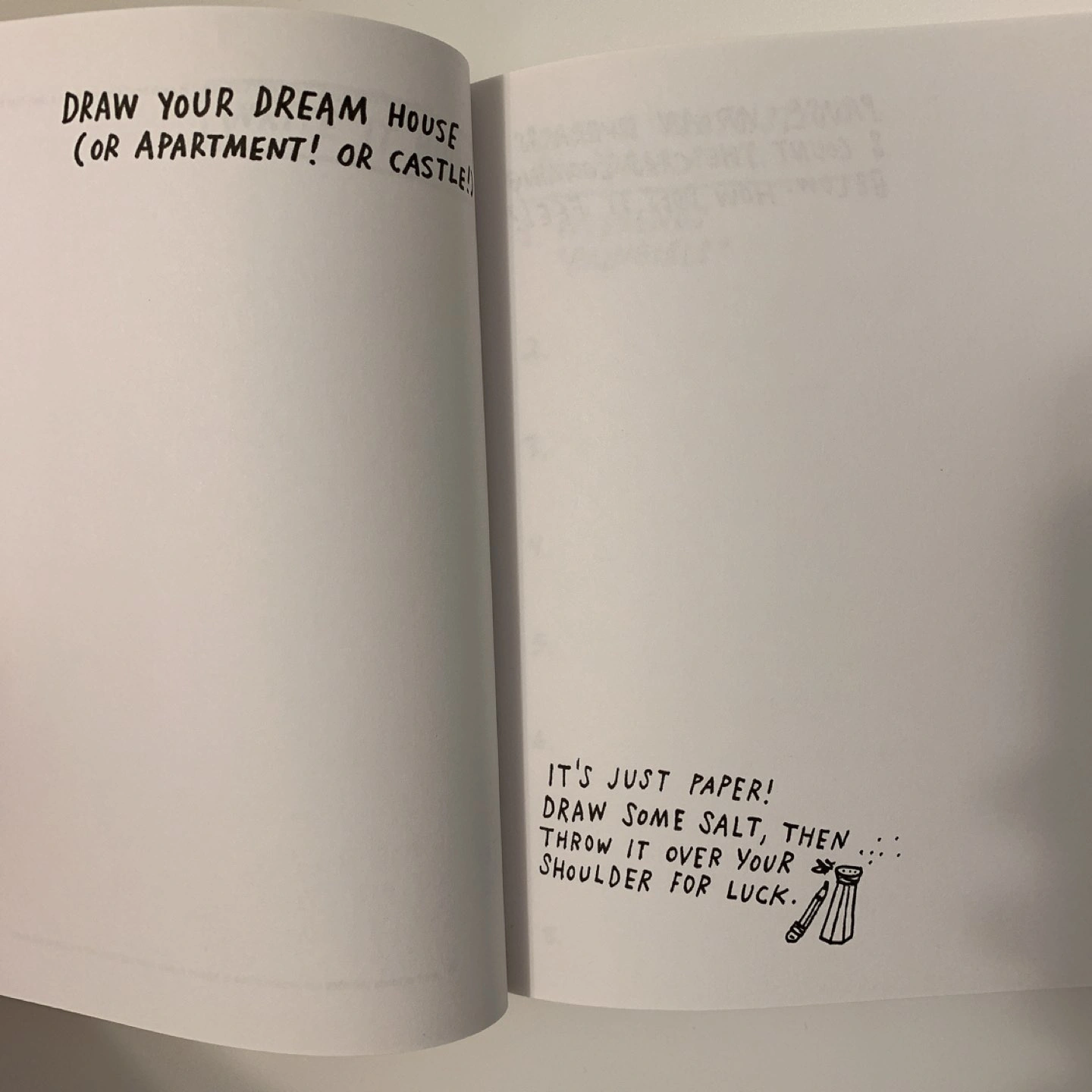 The book that helps you stay creative with prompts on each page! It’s similar to Wreck This Journal. 3 front pages were ripped out which had personal information on. Though they didn’t matter to the journal anyway! Haven’t used the rest of the book, maybe you can.