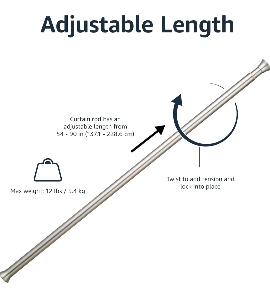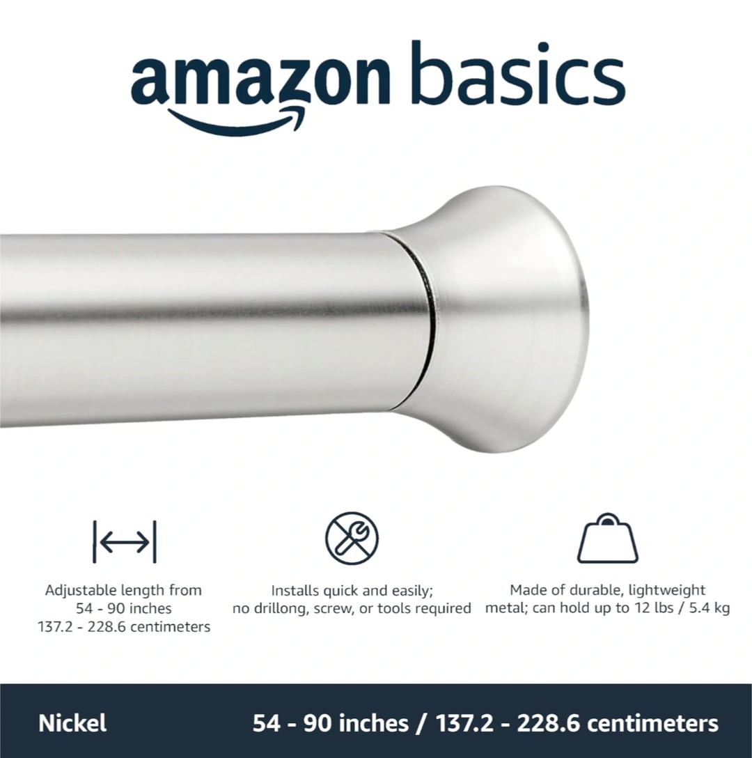 Adjustable Tension Curtain Rod (54"-90" Nickel Finish)