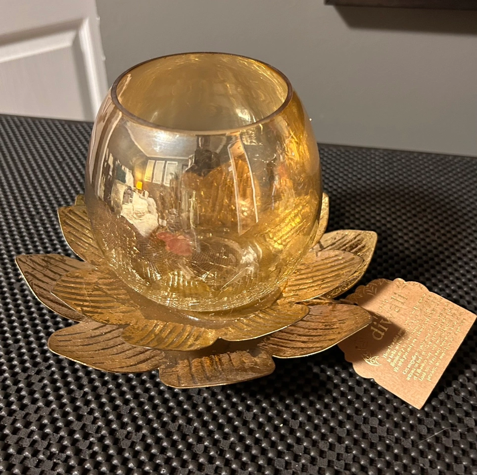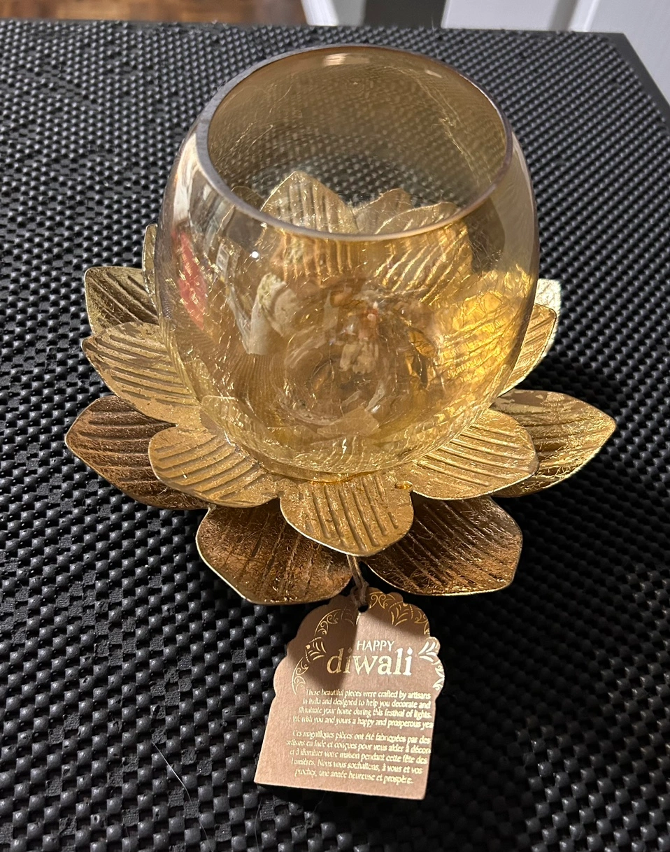 Diwali lotus Glass/Metal Candle Holder $25