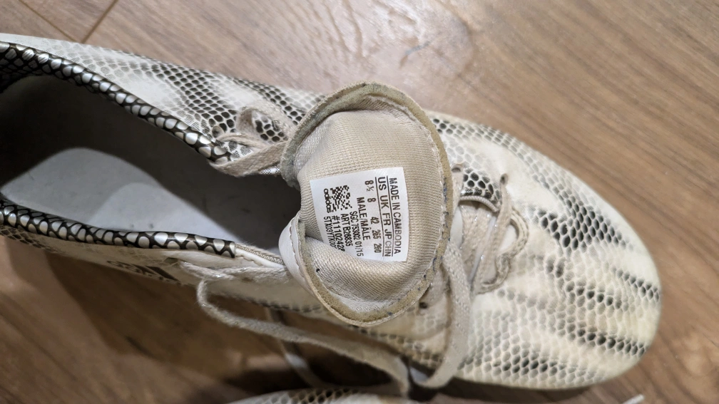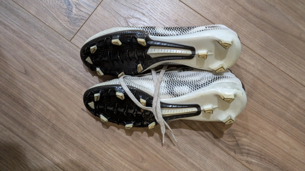 Adidas Adizero F10 cleats. Size 8.5 US Men. I would say that the fit is a bit wider than other cleats at the front of the boot.