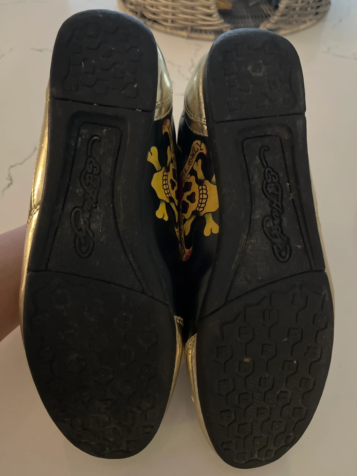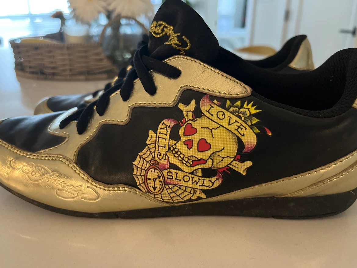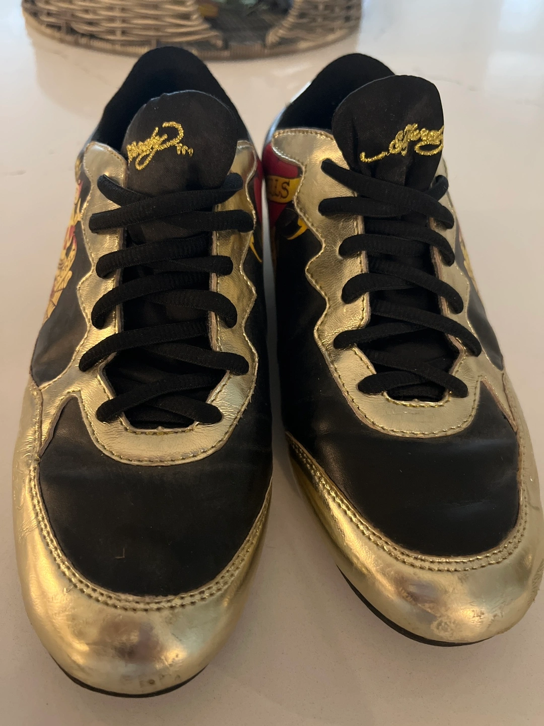 89Gold and black sneakers With designs Size 8