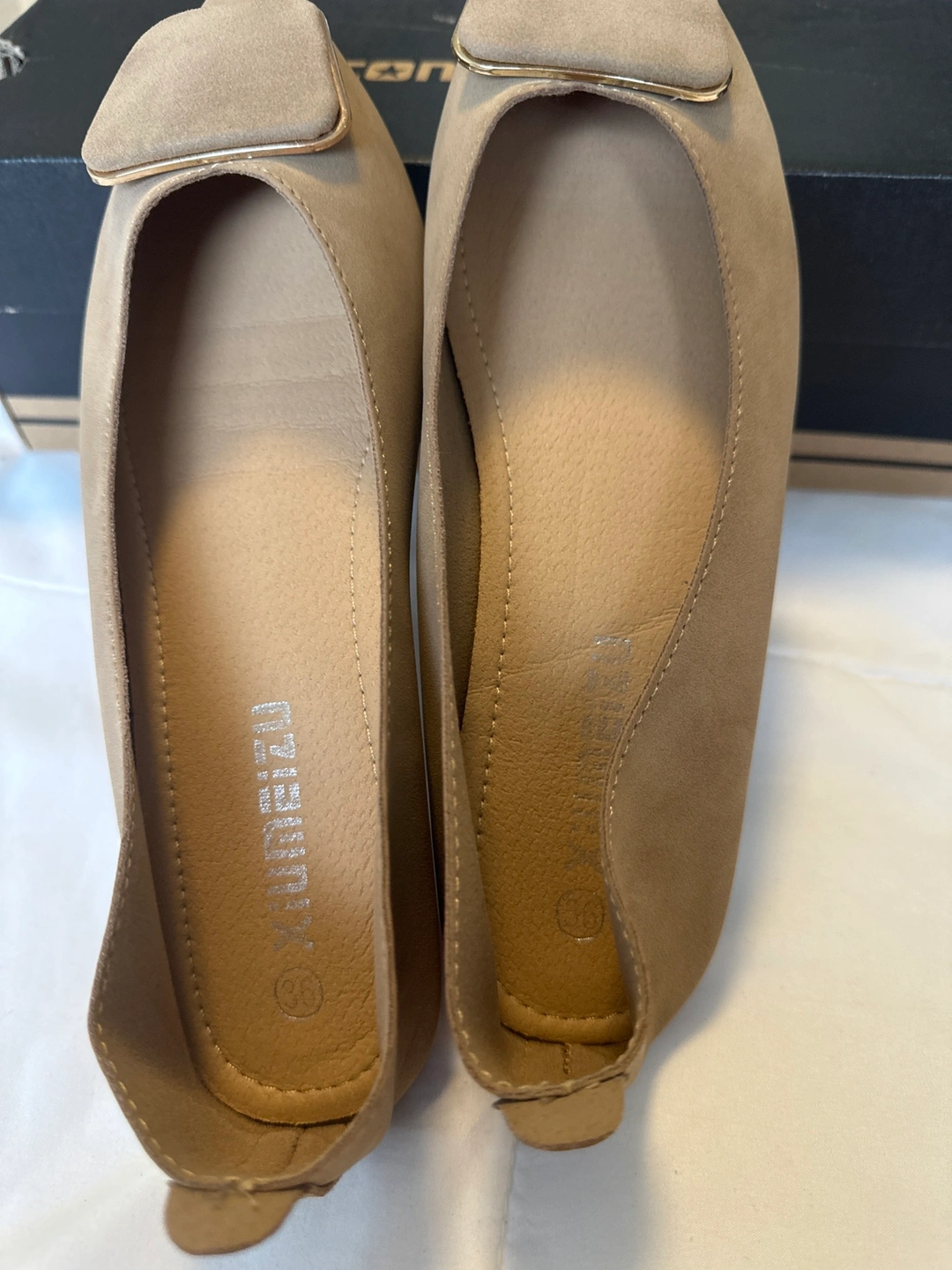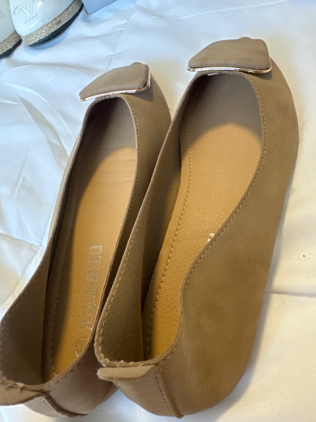 These are a comfortable and stylish pair of flats. They are in great condition with no major flaws. They are a size 6 (38) and fit true to size. They are made from a suede-like material.