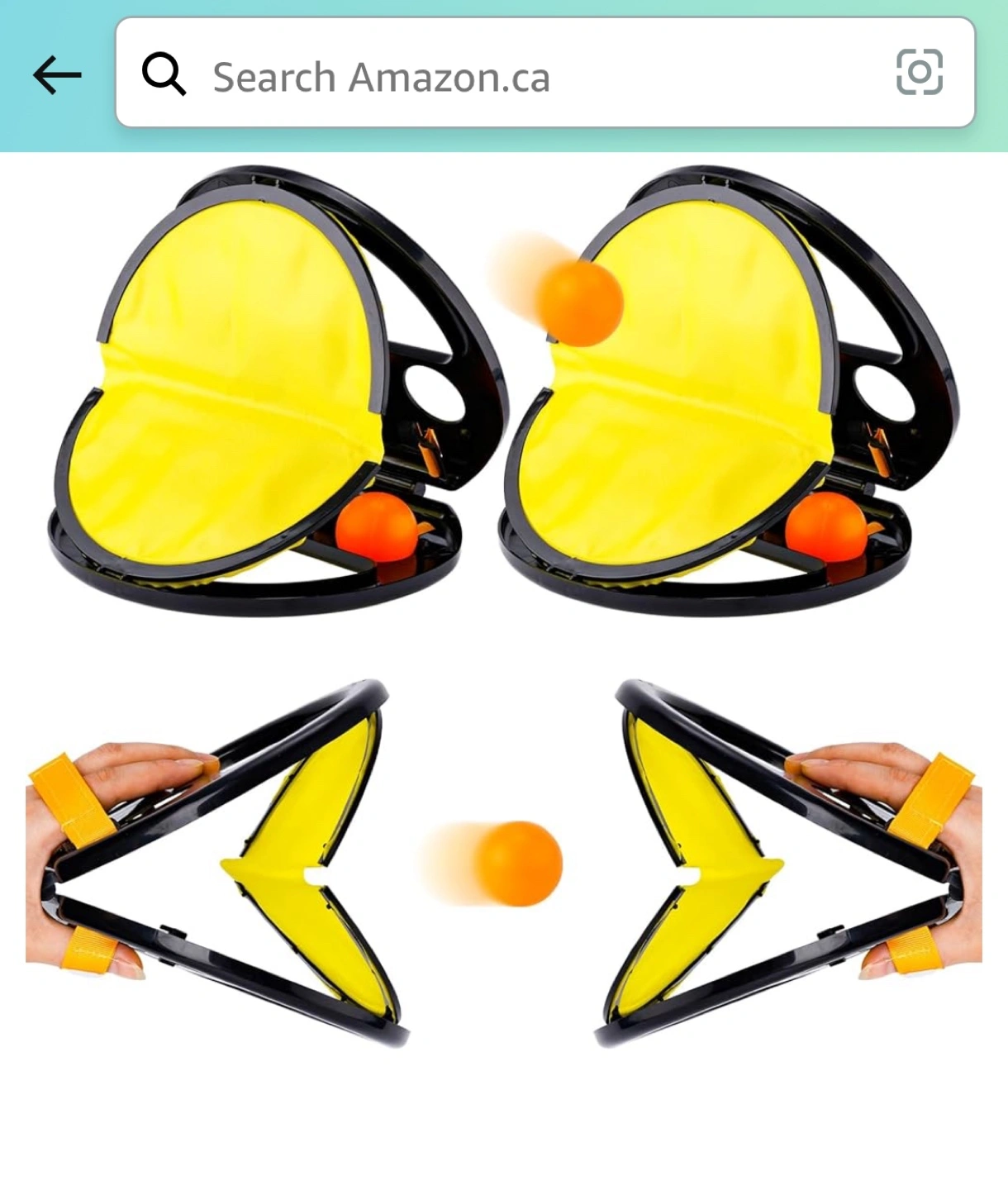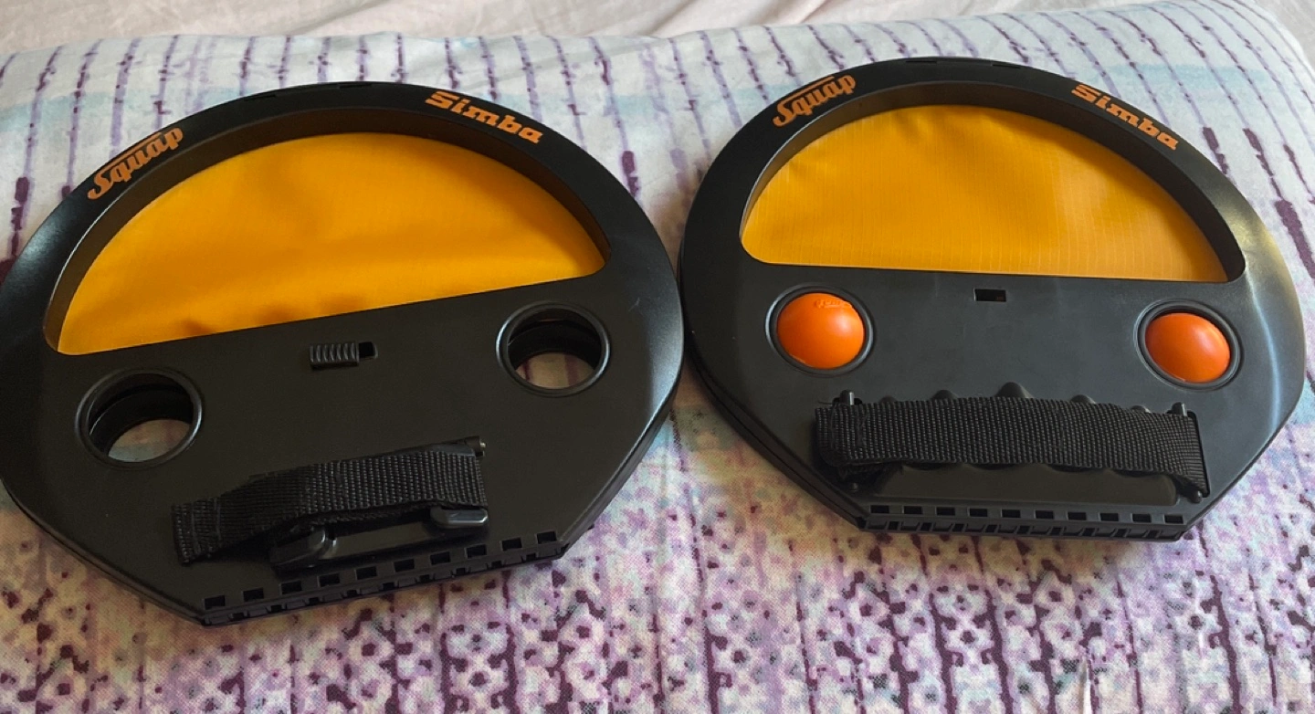 273This is a 2-player catching game. Each player holds a squap and tosses the ball to each other. Comes with 2 squaps and 2 balls.