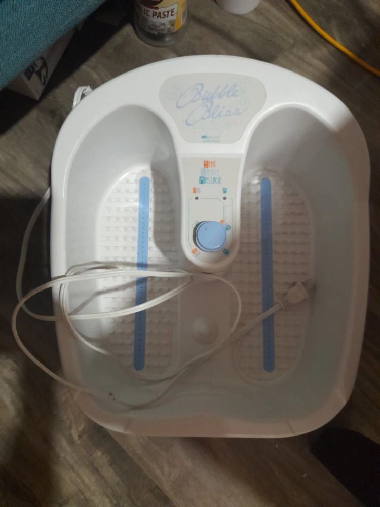 Electric foot spa with heat and massage function. Includes power cord.