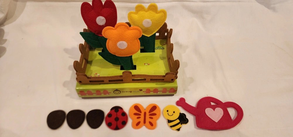 There are color-matched ladybug, butterfly, and bees, as well as three seeds and a watering can.