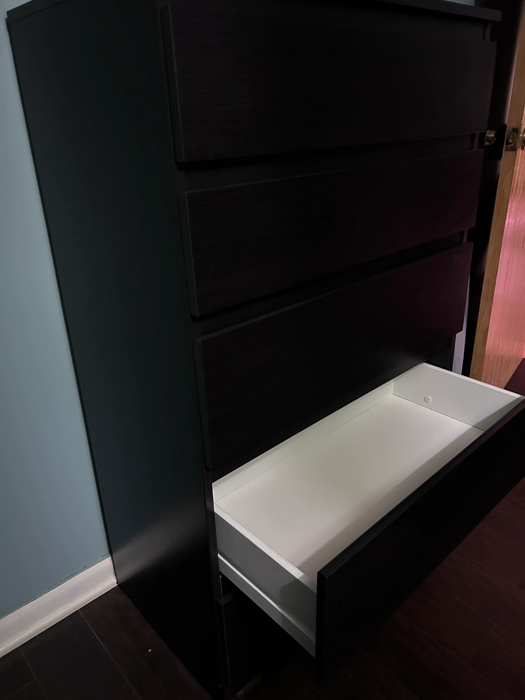 Black IKEA dresser, all the drawers open and clothes nicely, no problems at all. Asking $80.