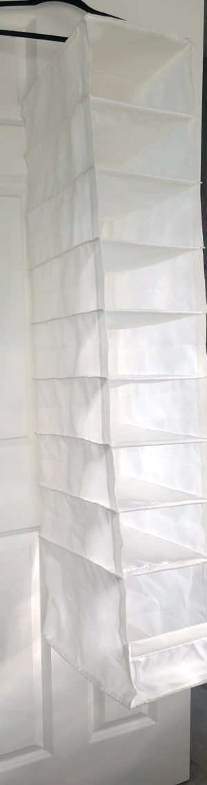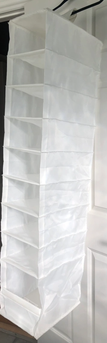 White hanging organizer with 9 compartments.
