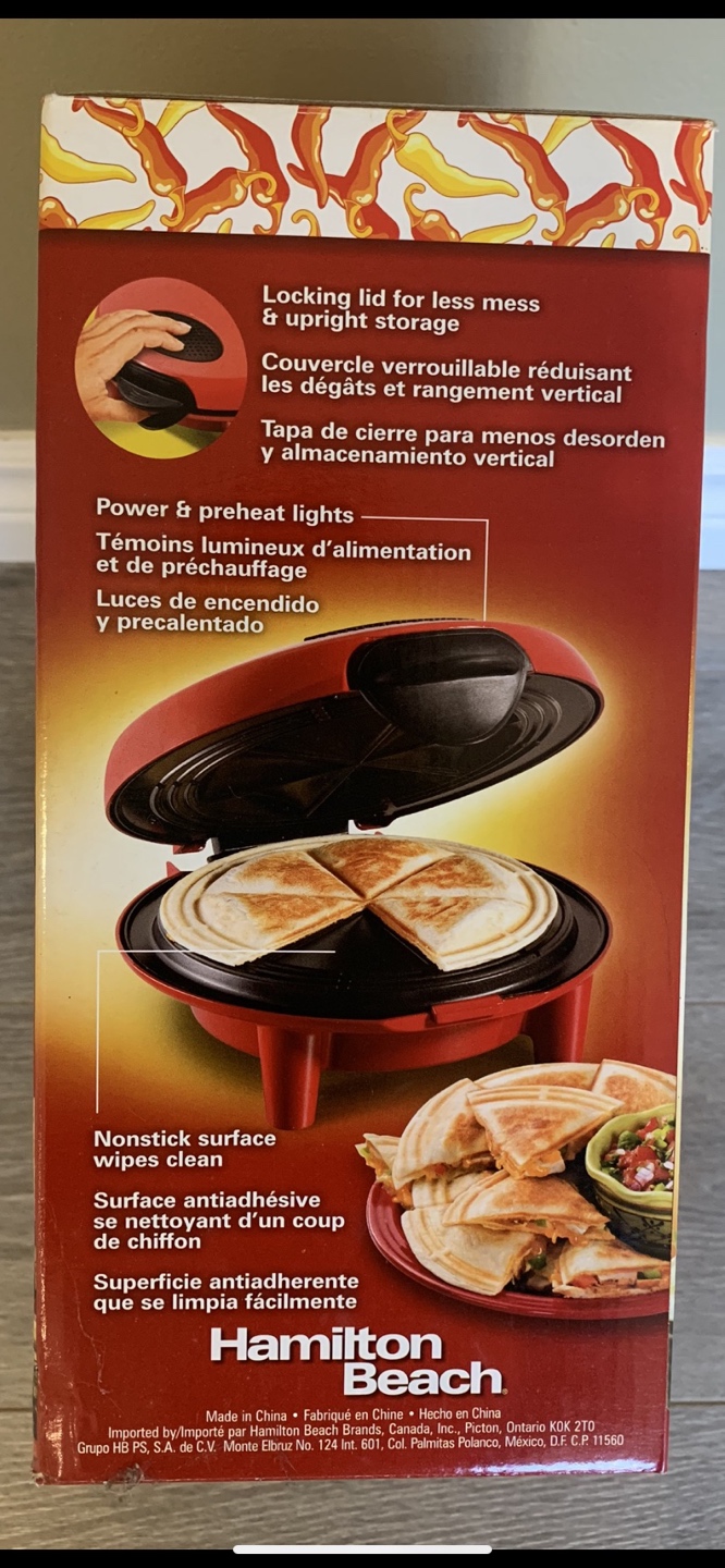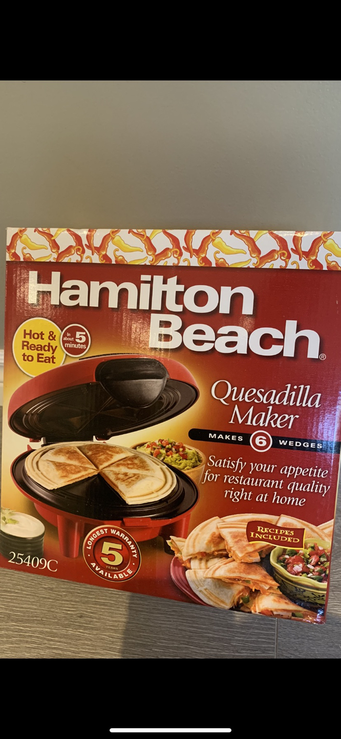 Buy & SellQuesadilla MakerQuesadilla Maker$35Hamilton Beach Quesadilla Maker Brand new- never used Makes 6 wedges Model # 25409C $65 on Amazon.ConditionNewBrandHamilton Beach WHERE TO MEET2327 Kingston RdView MapSELLERverifiedDevonnaBirchcliffe1035 reviews0 chats·2 favorites·60 viewsSEND CHAT TO SELLERHi Devonna! I’m interested in your listing.Hi Devonna! I’m interested in your listing.Get the Karrot app to chatSign In to chat