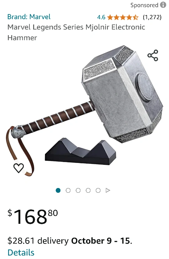 Marvel Legends Series Mjolnir Electronic Hammer. Seems to be selling for a lot more on eBay and amazon. Selling it because I know nothing about this stuff and want it gone. sells on other sites for a lot more than im asking. open to fair offers before I try selling it at a collectables store.