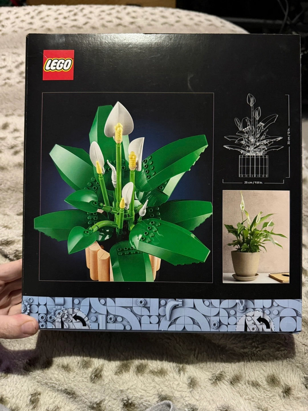 Build your own Peace Lily with this LEGO Botanical Collection set. It includes 474 pieces for a fun building experience. The finished model measures 25 cm (9.8 in.) tall. It's perfect for display!