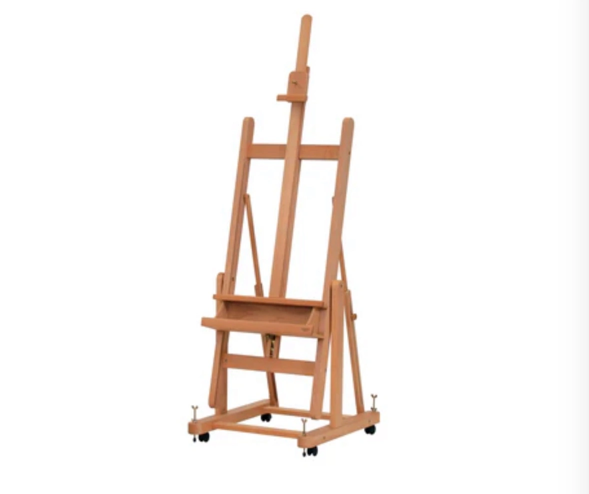 This is a wooden artist easel with a sliding tray and wheels. It is in good condition. It has paint on it, as can be expected. Pickup only. Downtown.