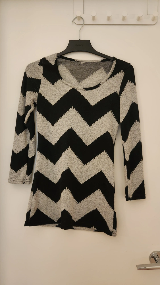 269It is long-sleeved and has a round neckline. It is a light weight fabric. It would be great for layering or wearing on its own. It is in great condition. You can wear this as a top but if you are a petite size, you can easily wear it as a mini long sleeves dress.