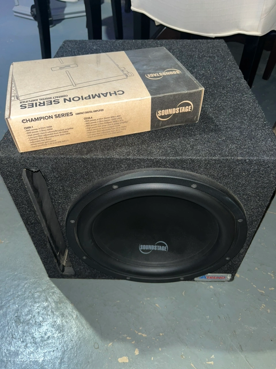 Got a gently used soundstage 12” sub w/trends ported box and matching soundstage mono amp with bass gain volume for under the dash System pounds nice Down sizing so no longer need Asking $250.00 obo 1964 Millwoods Road NW Millwoods area for pick up