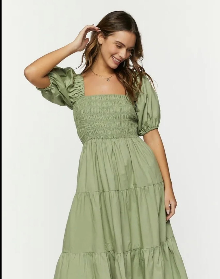 Forever 21 Puff Sleeve Smocked Dress