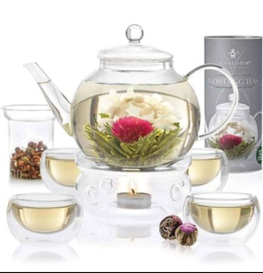 1x Teapot, 1x Glass Infuser, 1x Warmer, 3x Double-sided Glass Cups