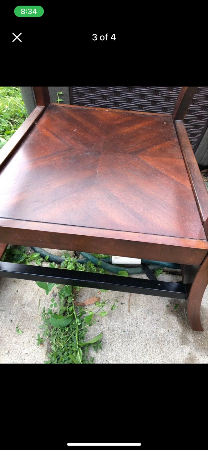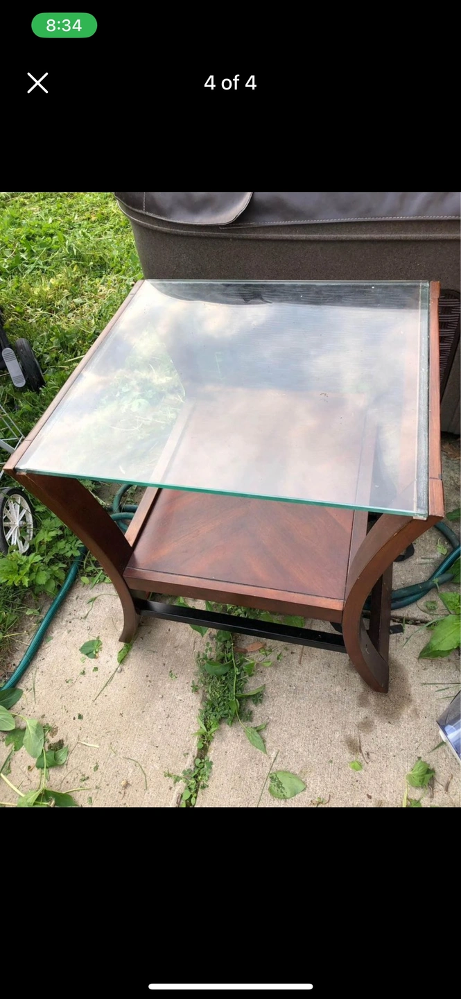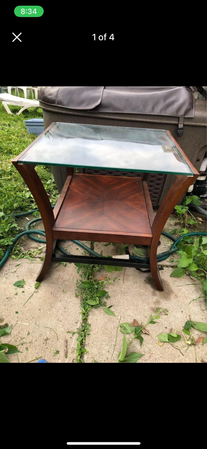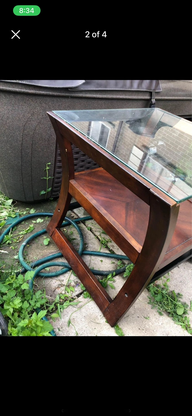 238This end table features a glass top and a lower wooden shelf. It is made of wood with a dark stain finish. It is ideal for use as an end table, nightstand, or accent table. Avail for pick up at Don mills Steele east area. All sales are final.