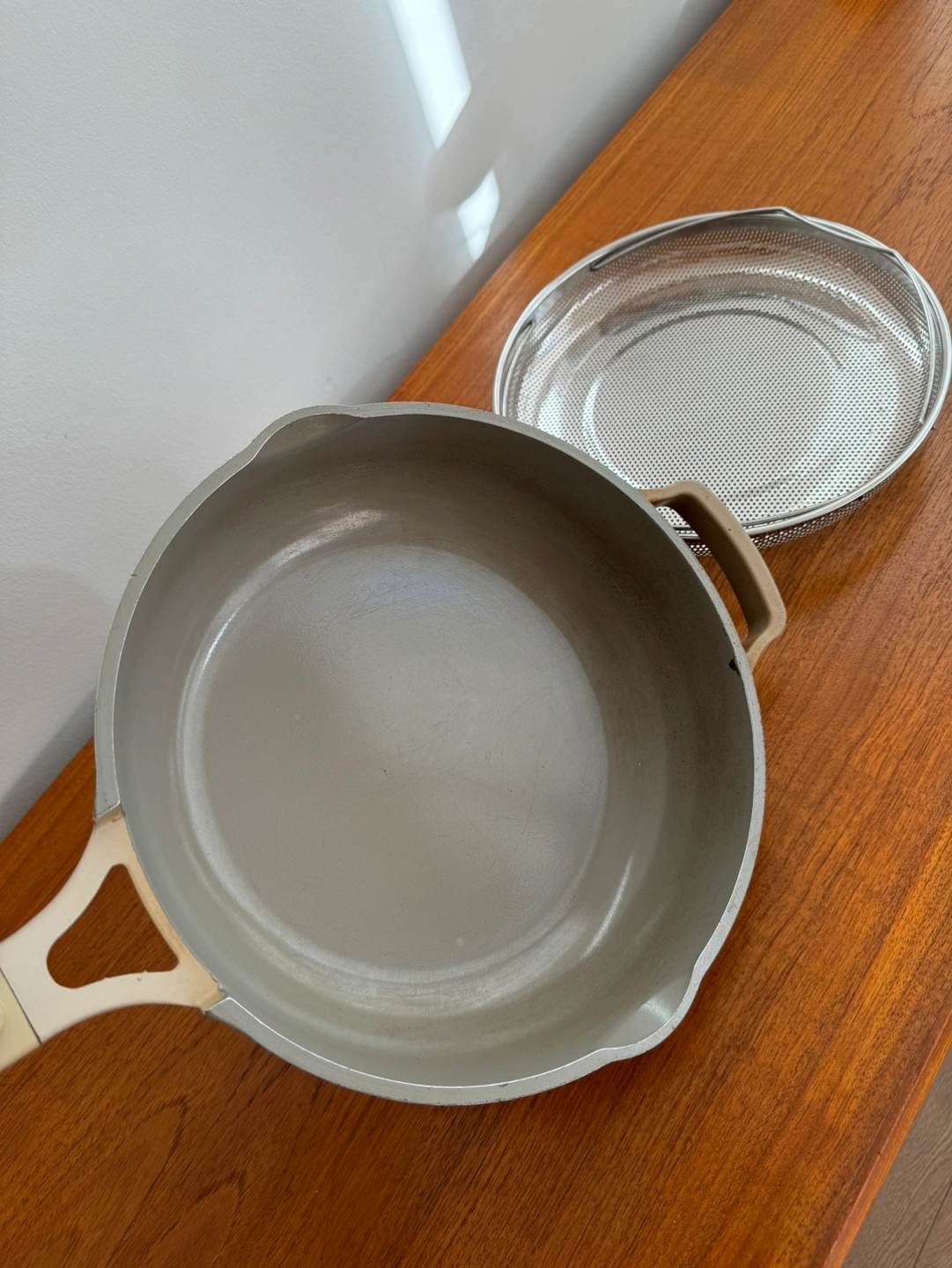 I've only had this Our Place Pan about a year. I rarely cook at home so it's still in very good condition. It looks very stylish in the kitchen, I love it. Just selling because i'm moving and don't have space for it!