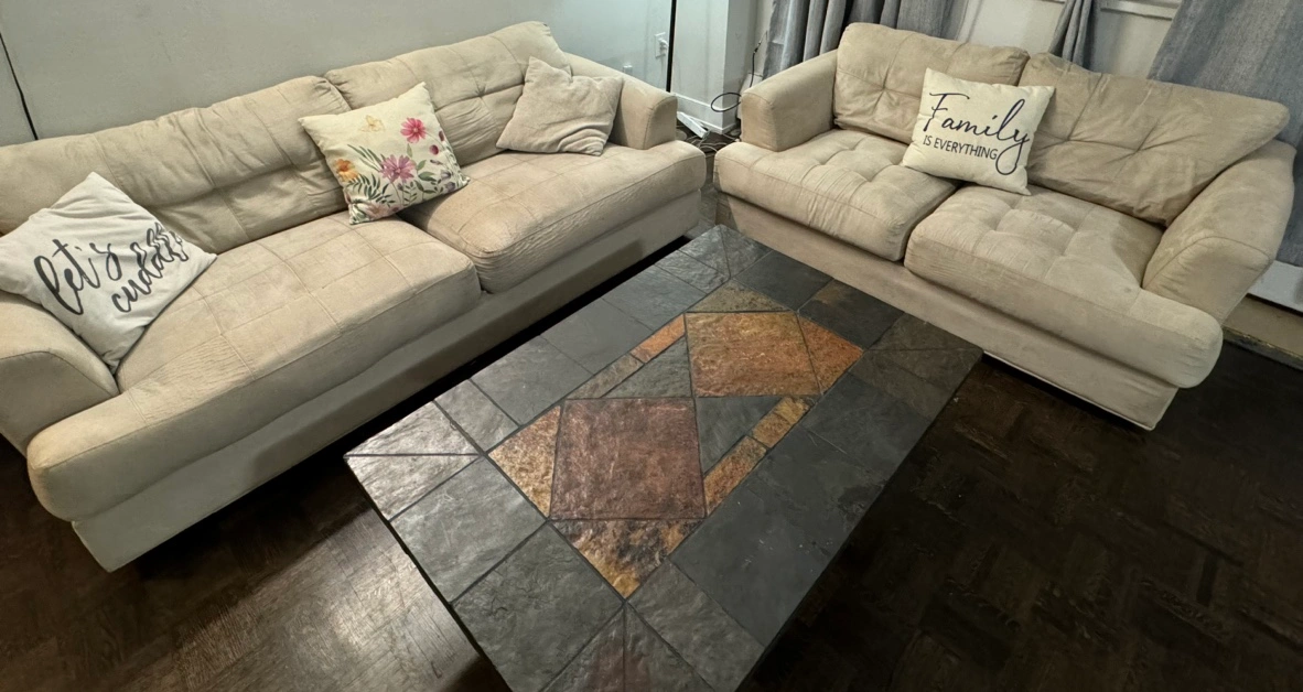 Buy & SellBeige Sofa SetBeige Sofa Set$100This set includes two couches and a coffee table. The couches feature a button-tufted design and the Table for free if anyone interested.ConditionLike newWHERE TO MEETCheck LocationView MapSELLERverifiedAyeshaThorncliffe Park721 review4 chats·4 favorites·190 views