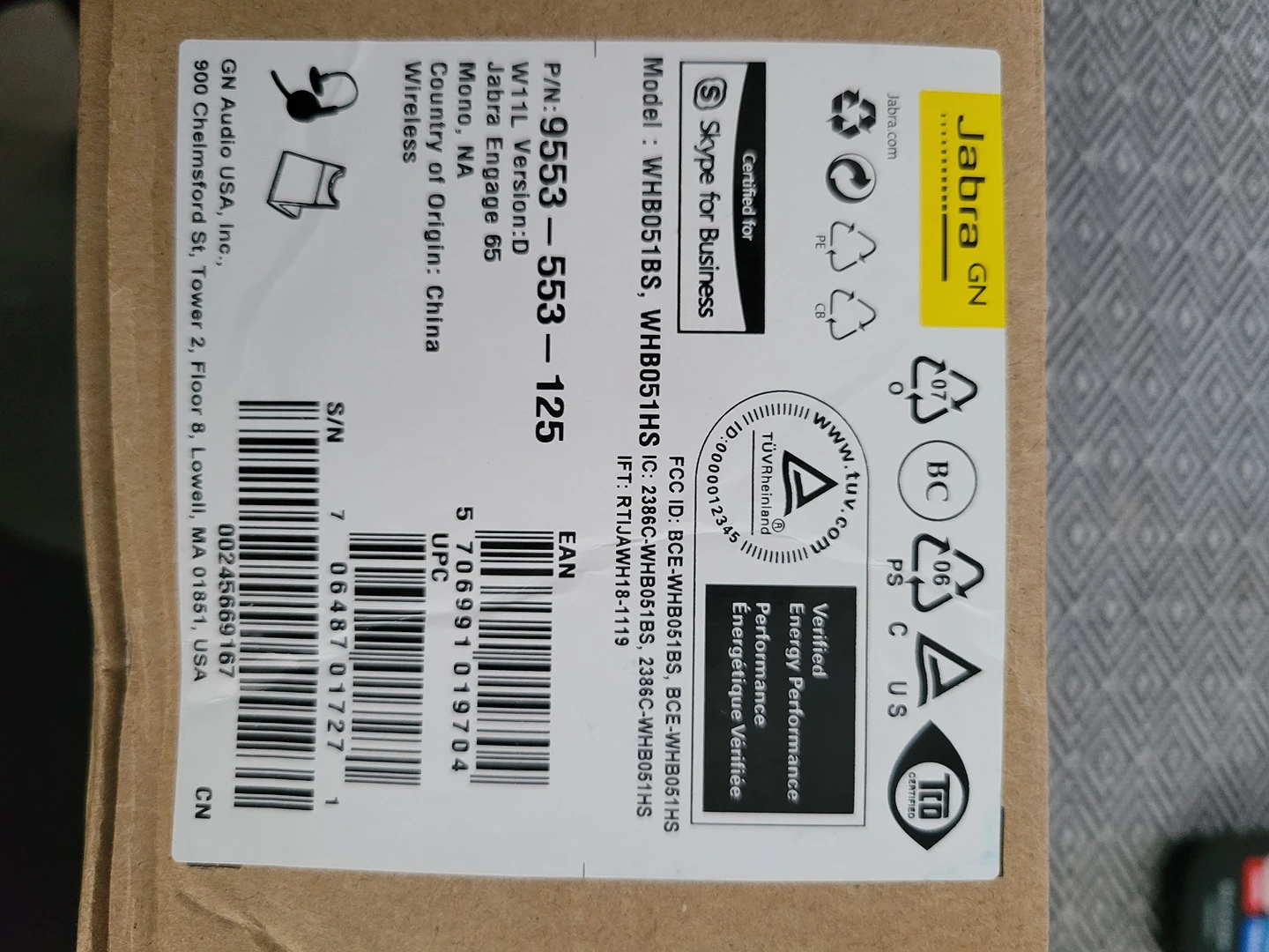 Jabra Engage 65, used only a couple times. great for work! Sound is amazing. This wireless headphone sells for $305 plus tax on Dell. Pick up by Weston and Lawrence.