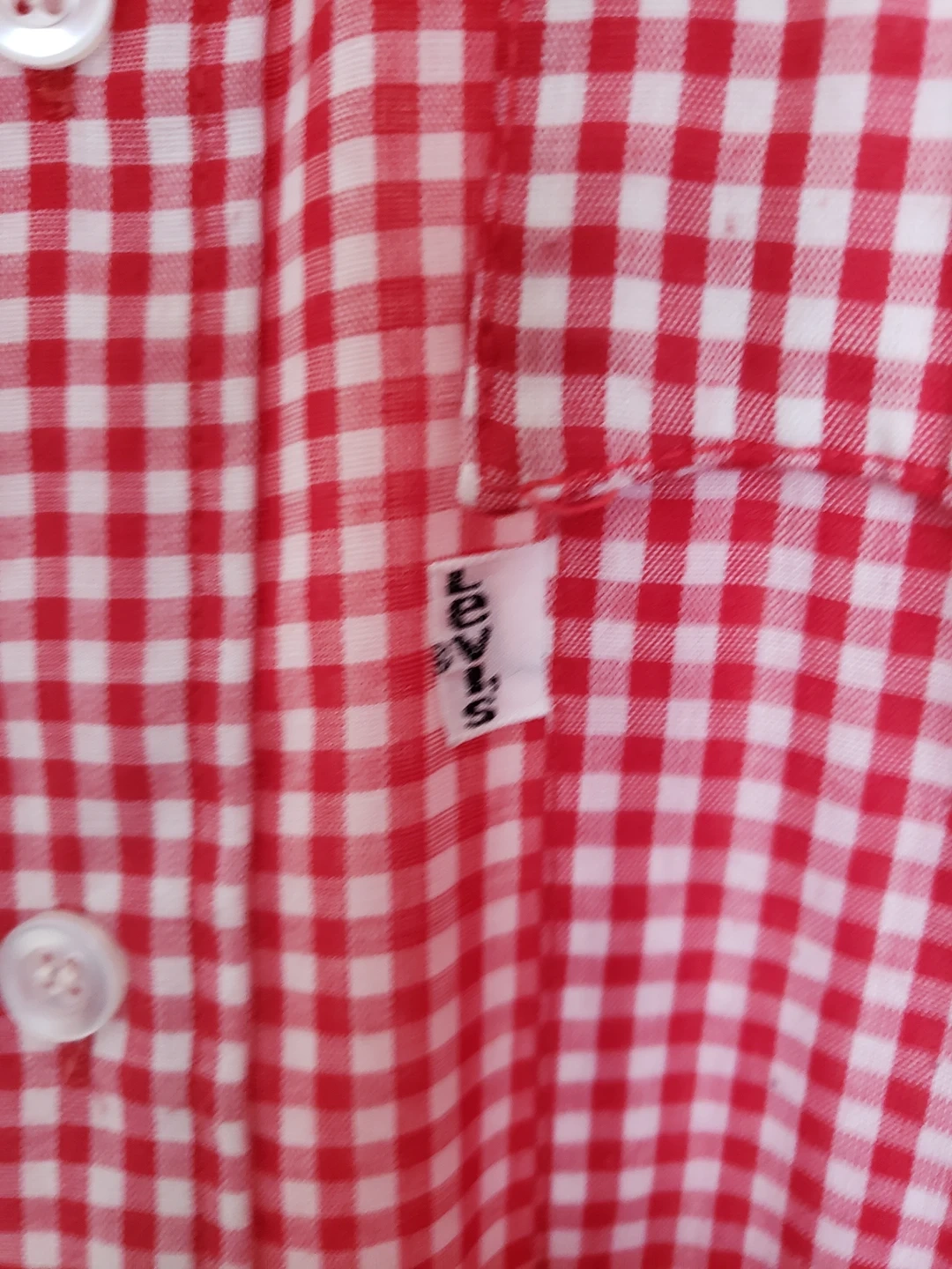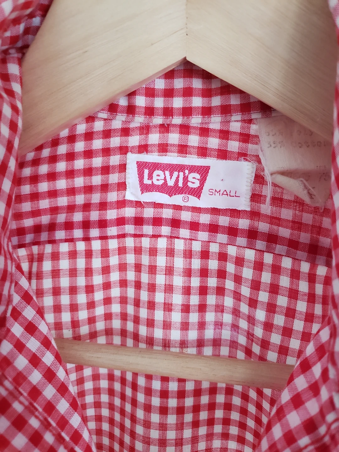 Slim cut size Small Men's shirt, 35% cotton 65% polyester (very lightweight). Classic 70's style and details :)