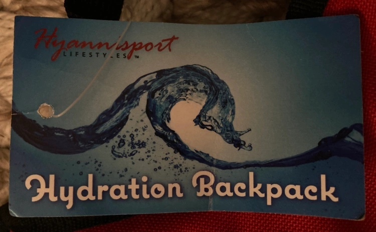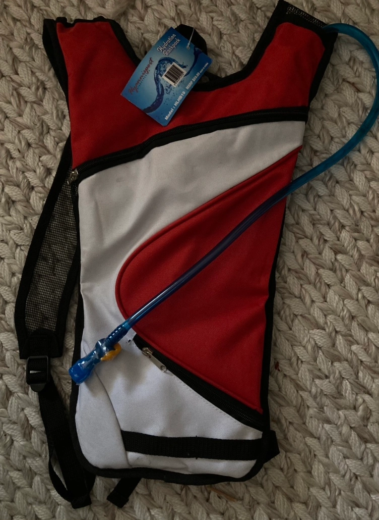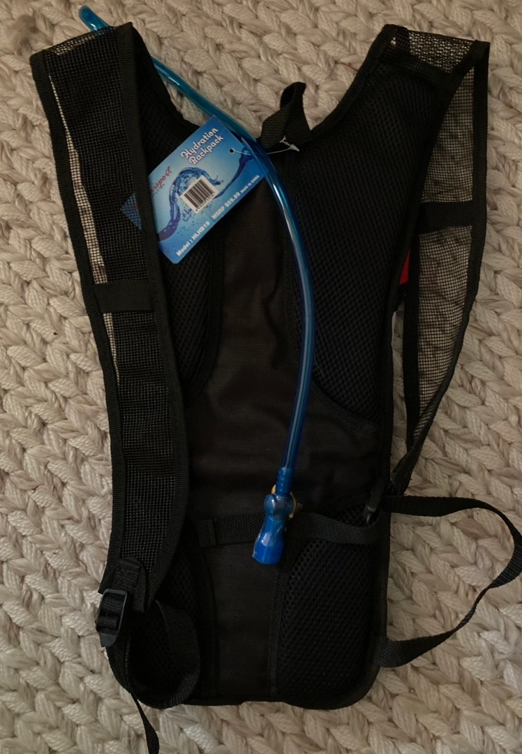 New with tags hydration backpack for biking, hiking still sealed blue drinking tube.