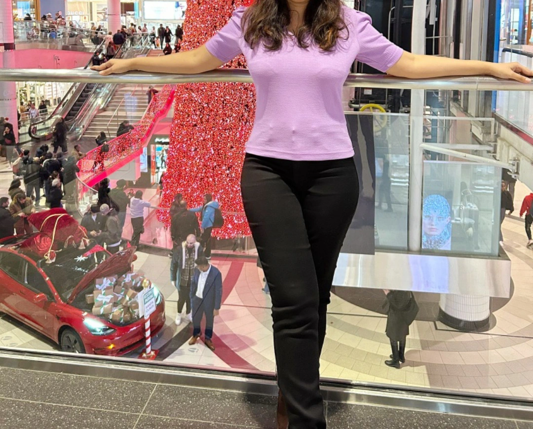 Short-sleeved, V-neck t-shirt in a light purple colour. Ribbed fabric. -$5