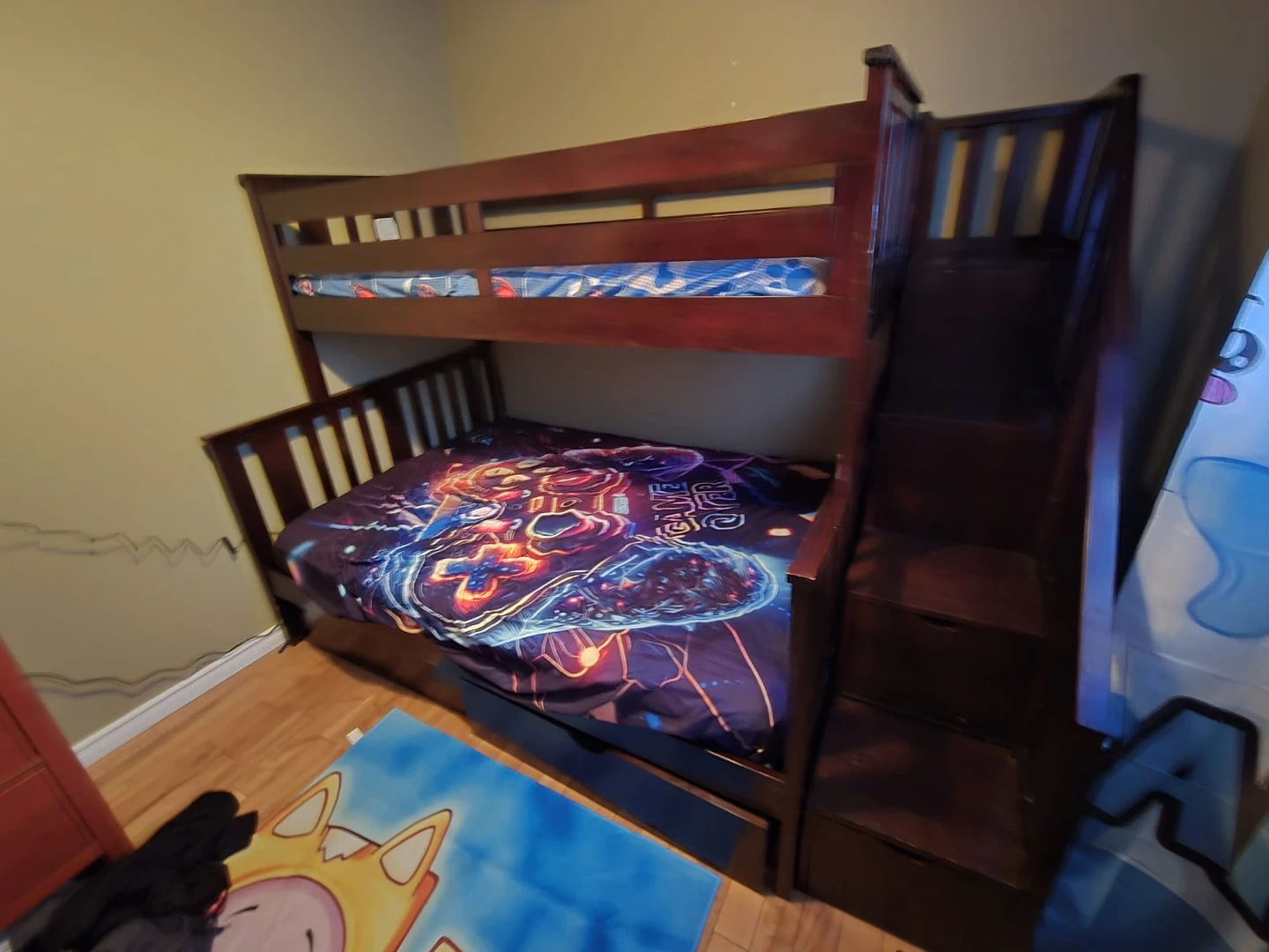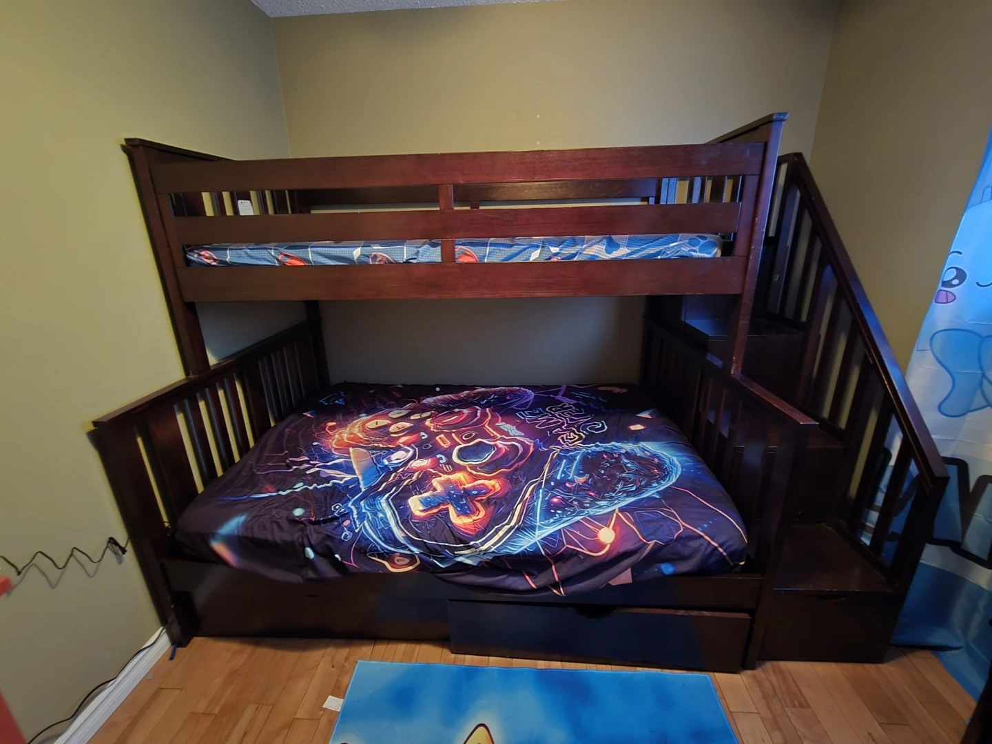 Dark Wood Bunk Bed with Stairs and Storage Drawer