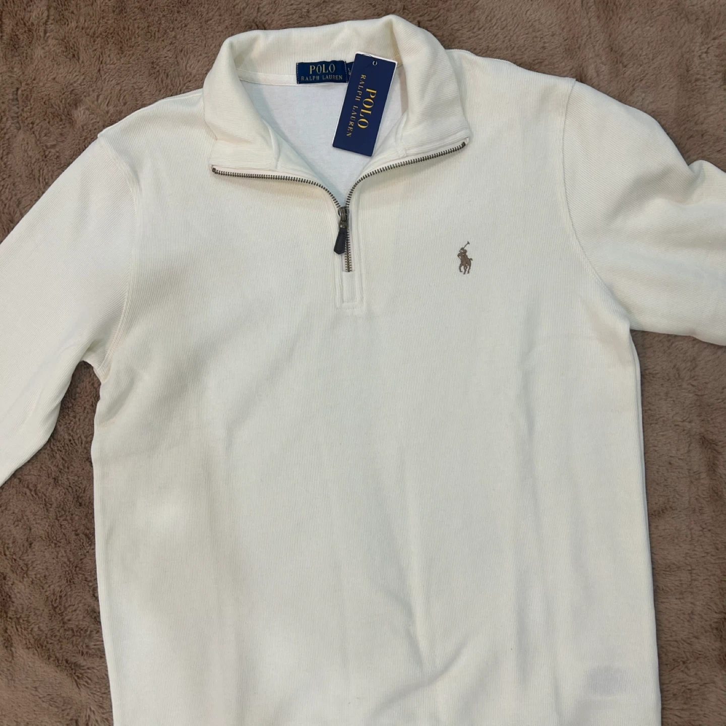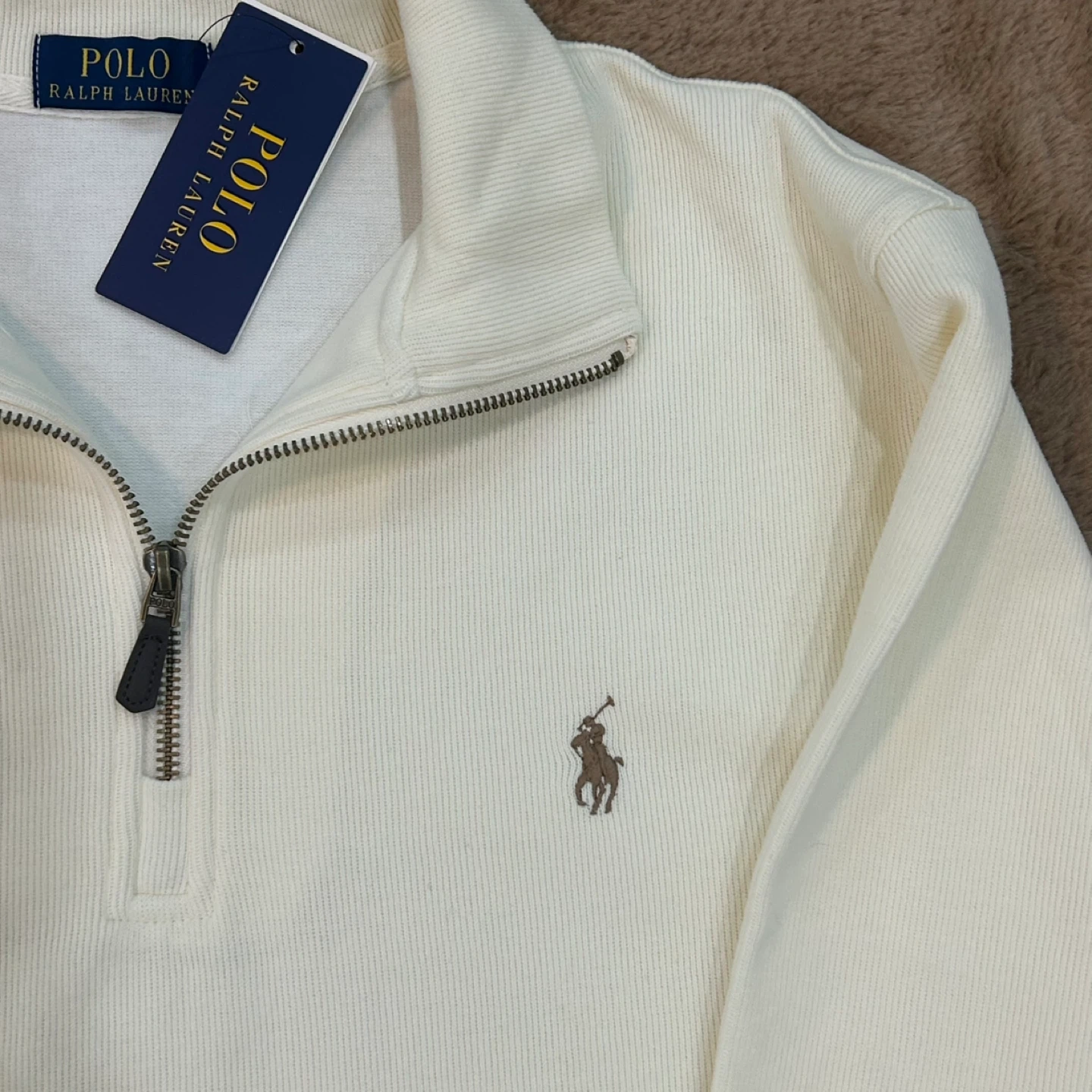 1:1 Polo Ralph Lauren style quarter zip in creamer colour