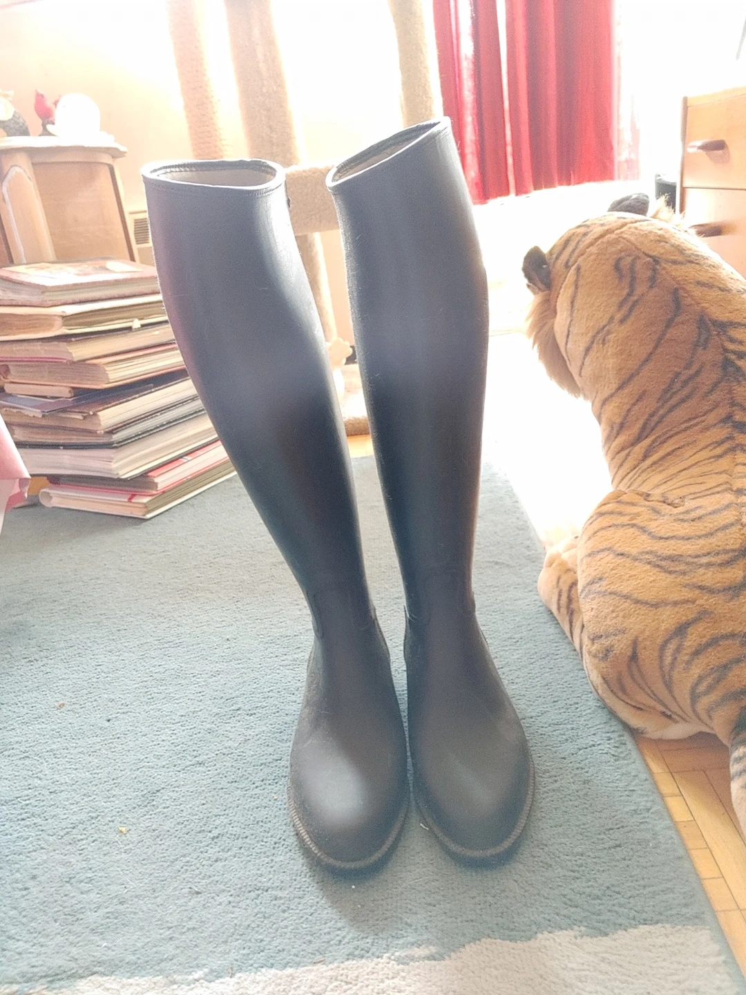 Rubber, wide calf & foot Size 8 but with width accommodations shouldn't be a problem.