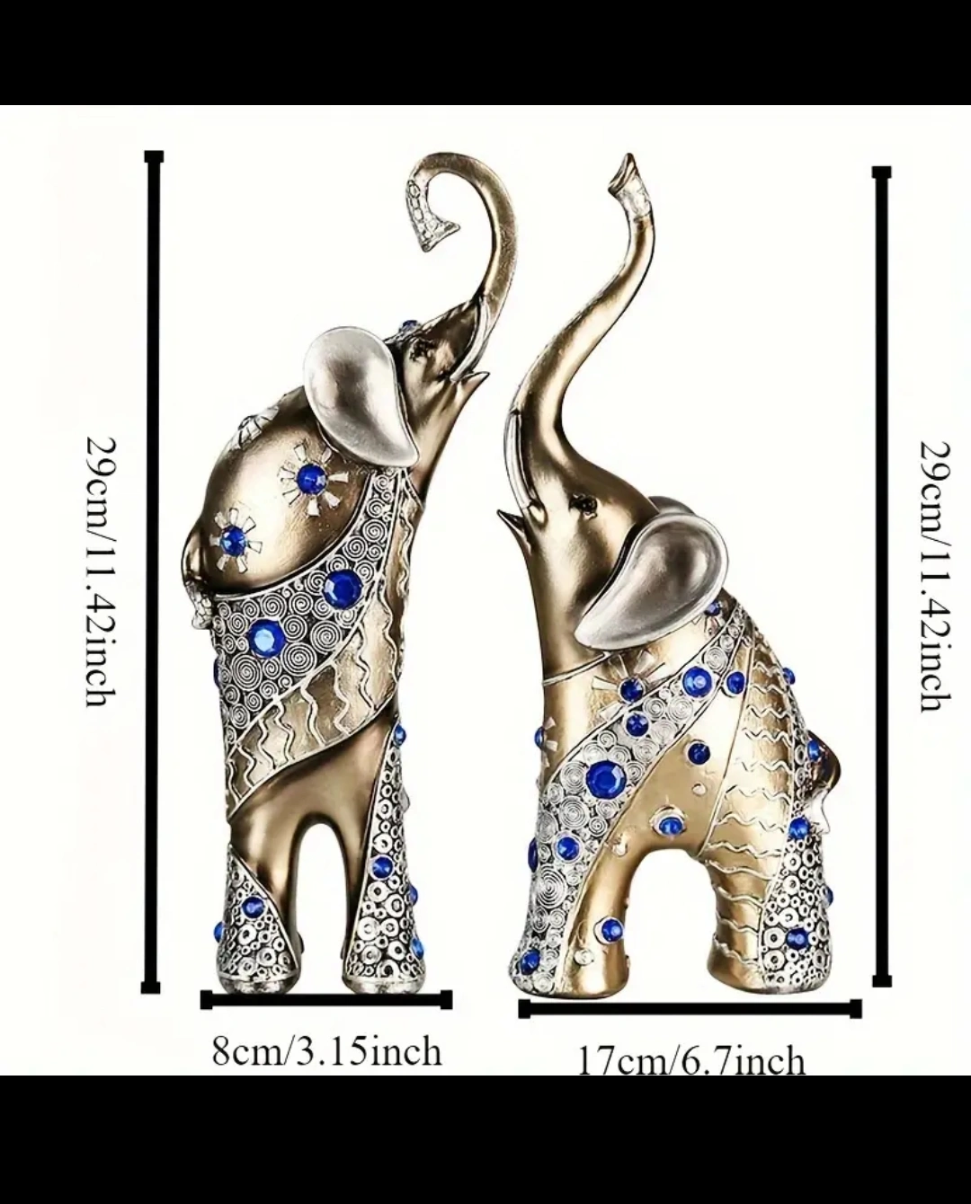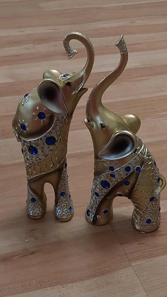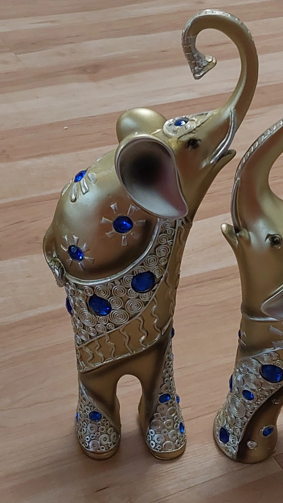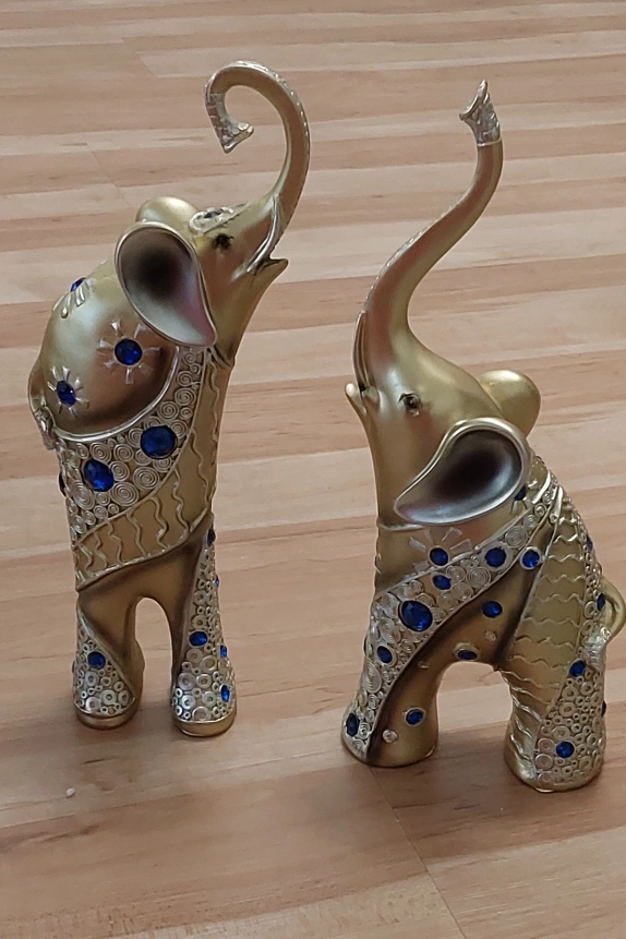 BNIB Gold and Blue Elephant Figurines
