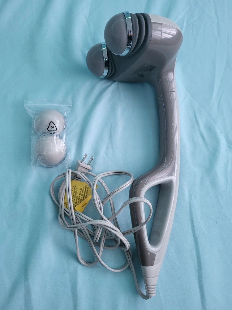 Includes a cord, extra massage heads, and heat function. In really good condition. No box. Used only once.( selling it coz its a lil heavy for me)