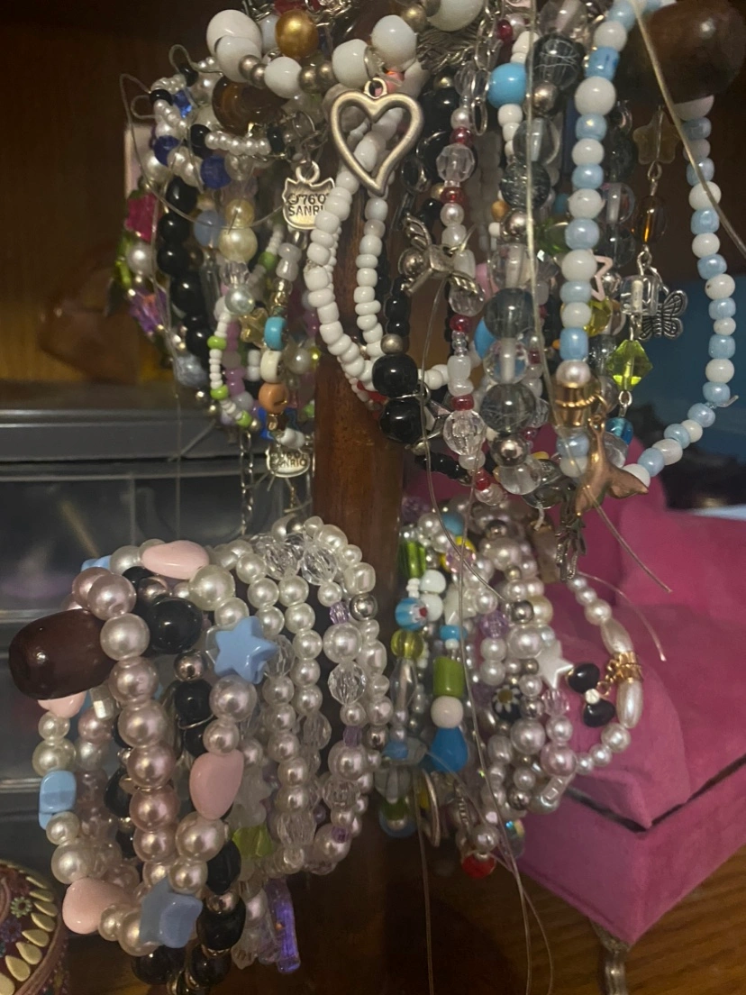 A collection of beaded bracelets with different colours and patterns. They are all in good condition and perfect for adding a touch of colour and style to your look! π