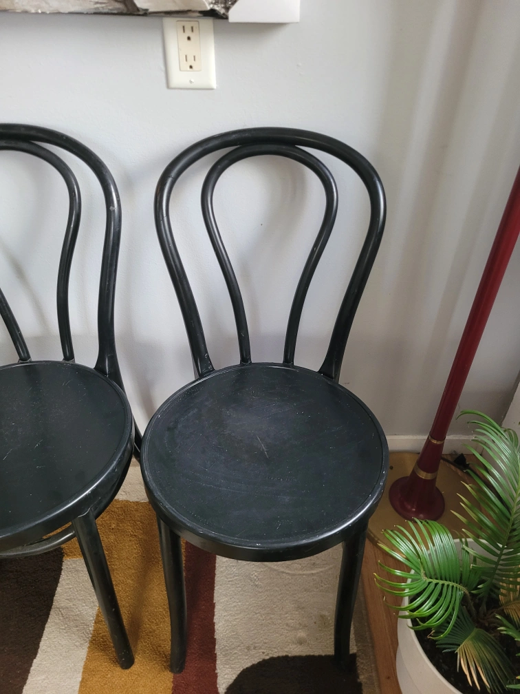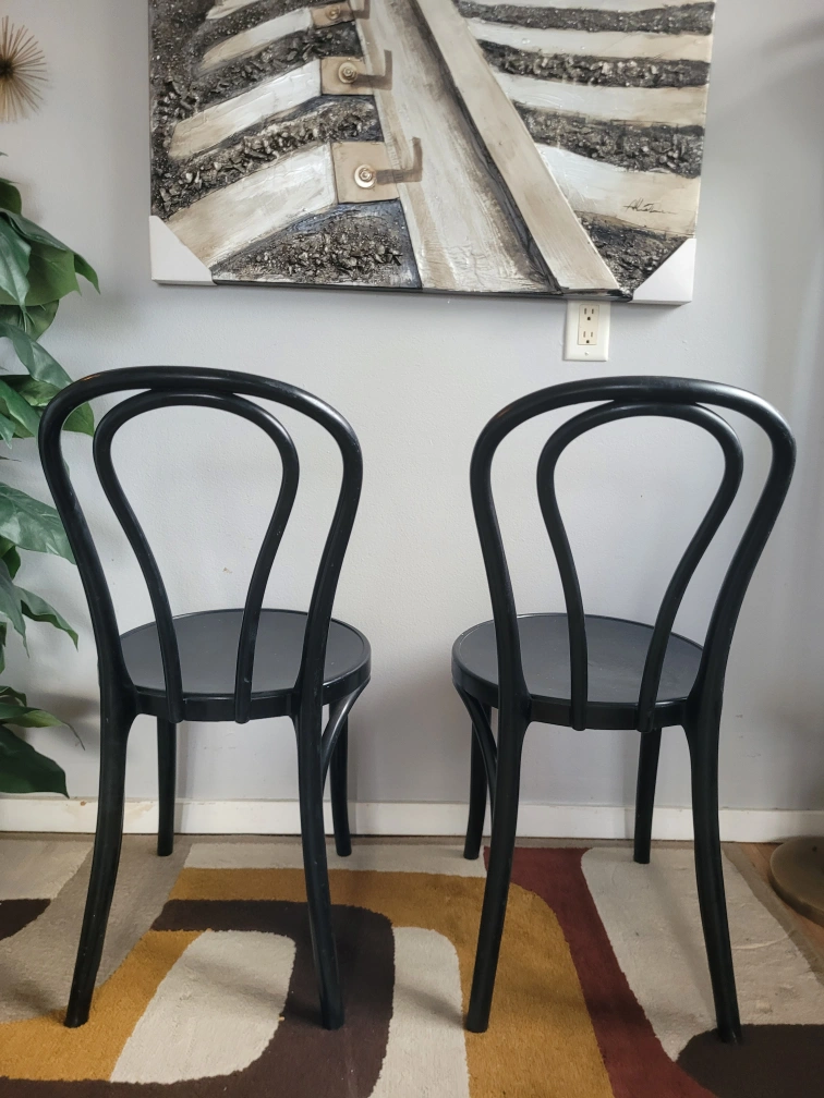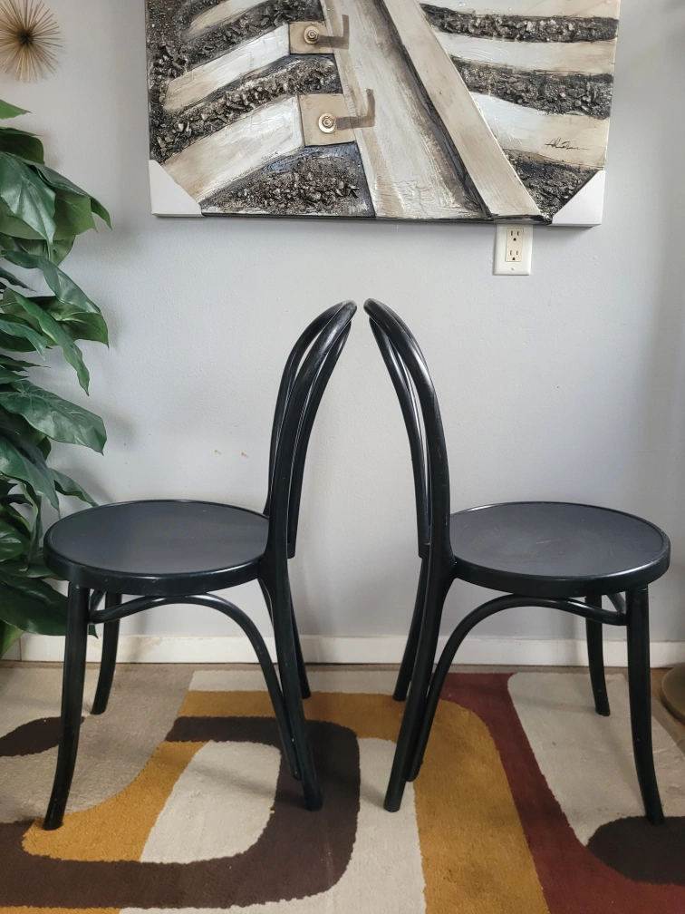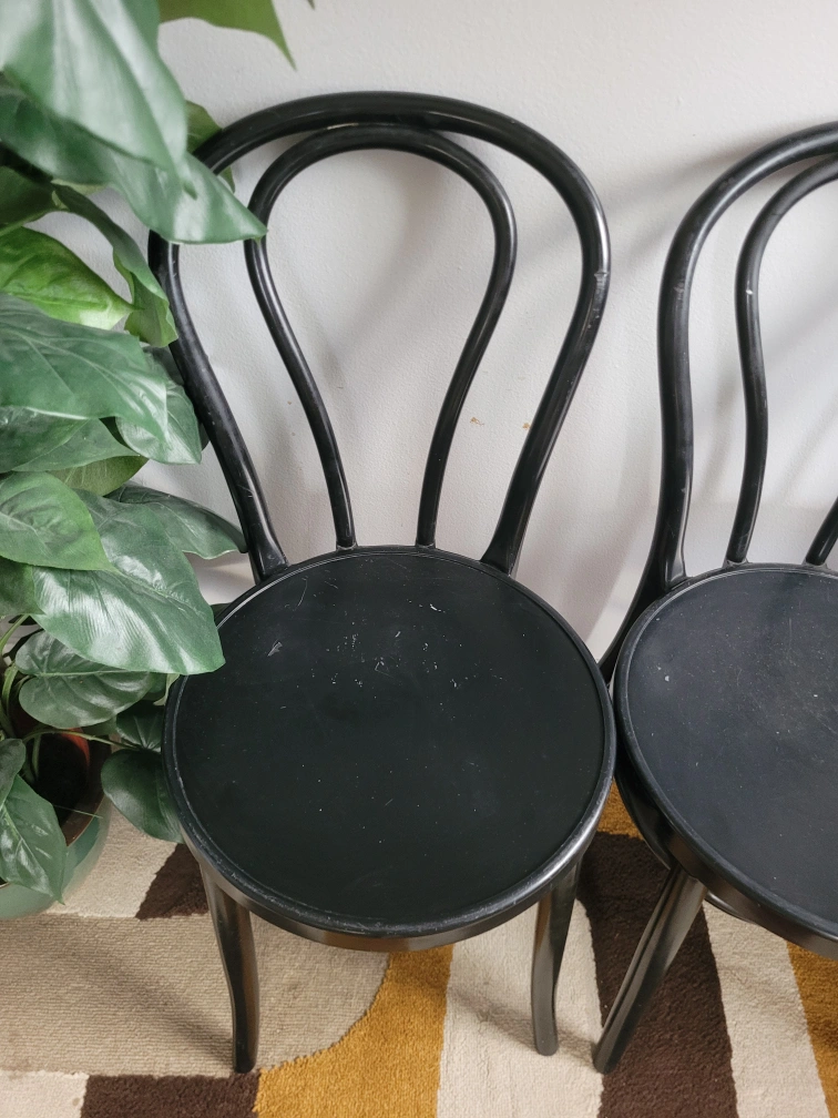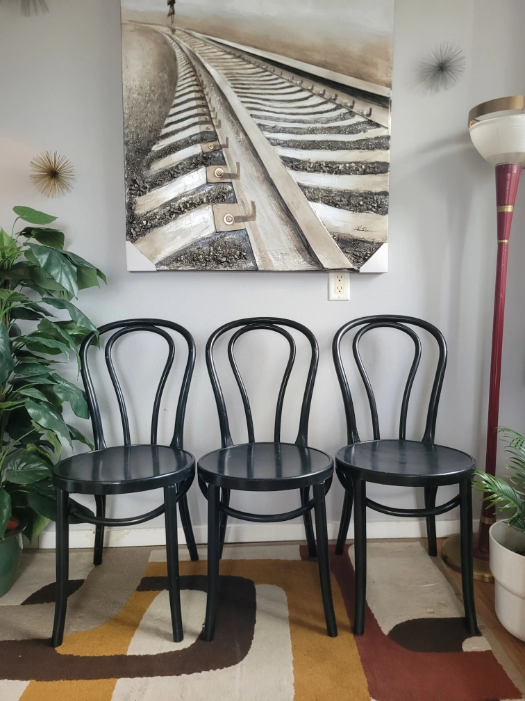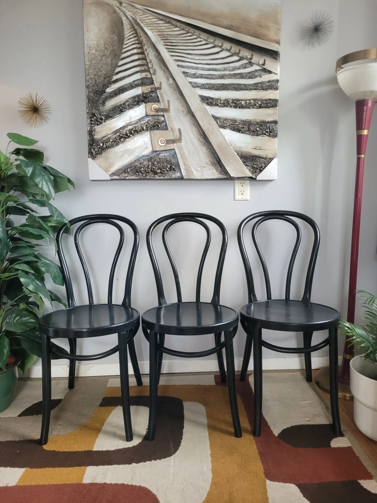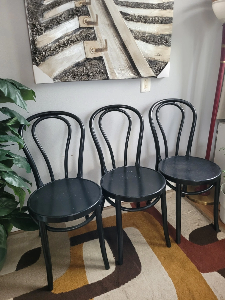 Vintage Set Of 3 Black Thonet Style Chairs