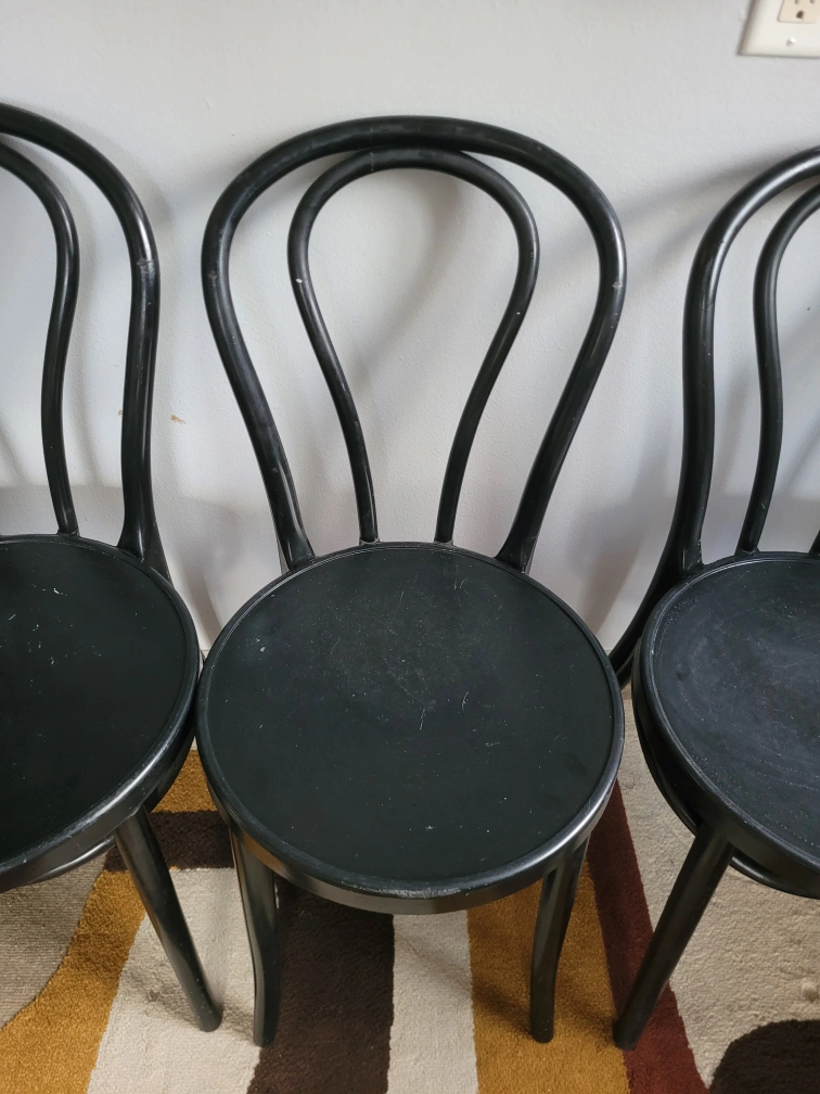 Vintage Set Of 3 Black Thonet Style Chairs (Price Per Item)