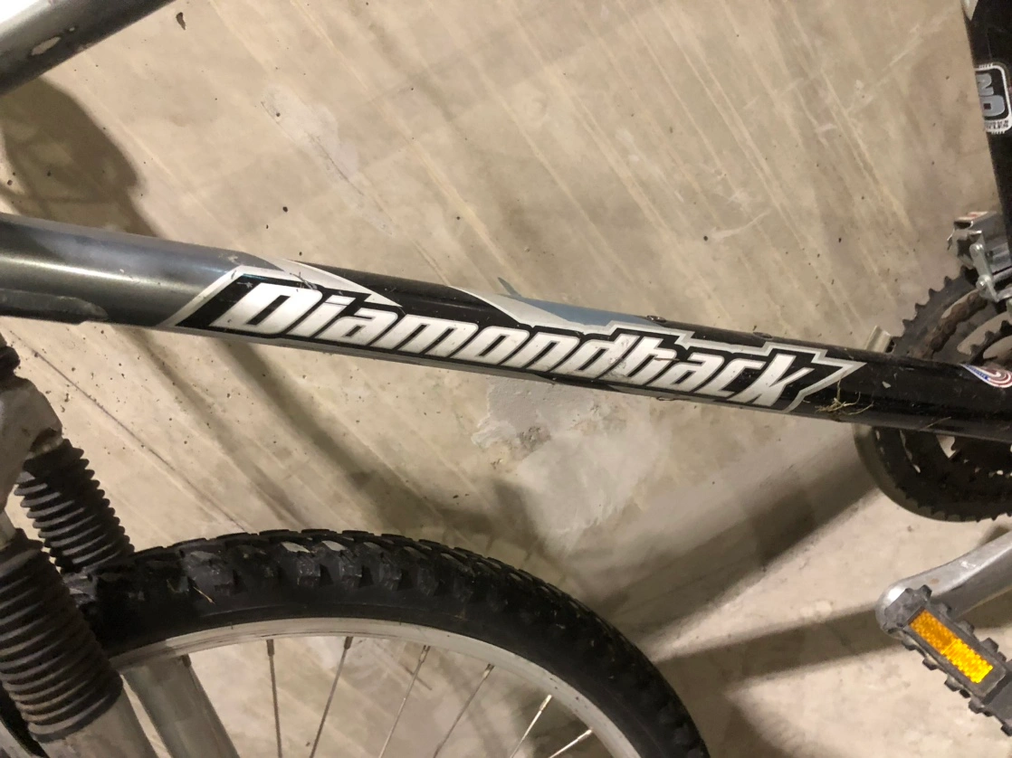 This is a Diamondback mountain bike, 26 inch wheels, 21 speeds. It has a front suspension and Shimano RevoShift gear shifters. The bike is in decent condition, but there are some scratches. It is ready for a new home!π Optional helmet too!