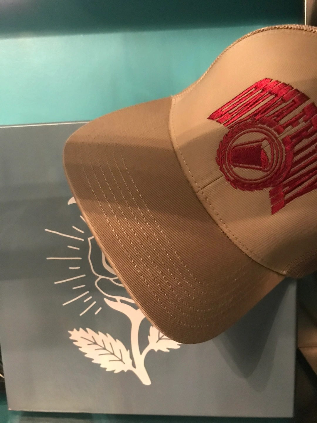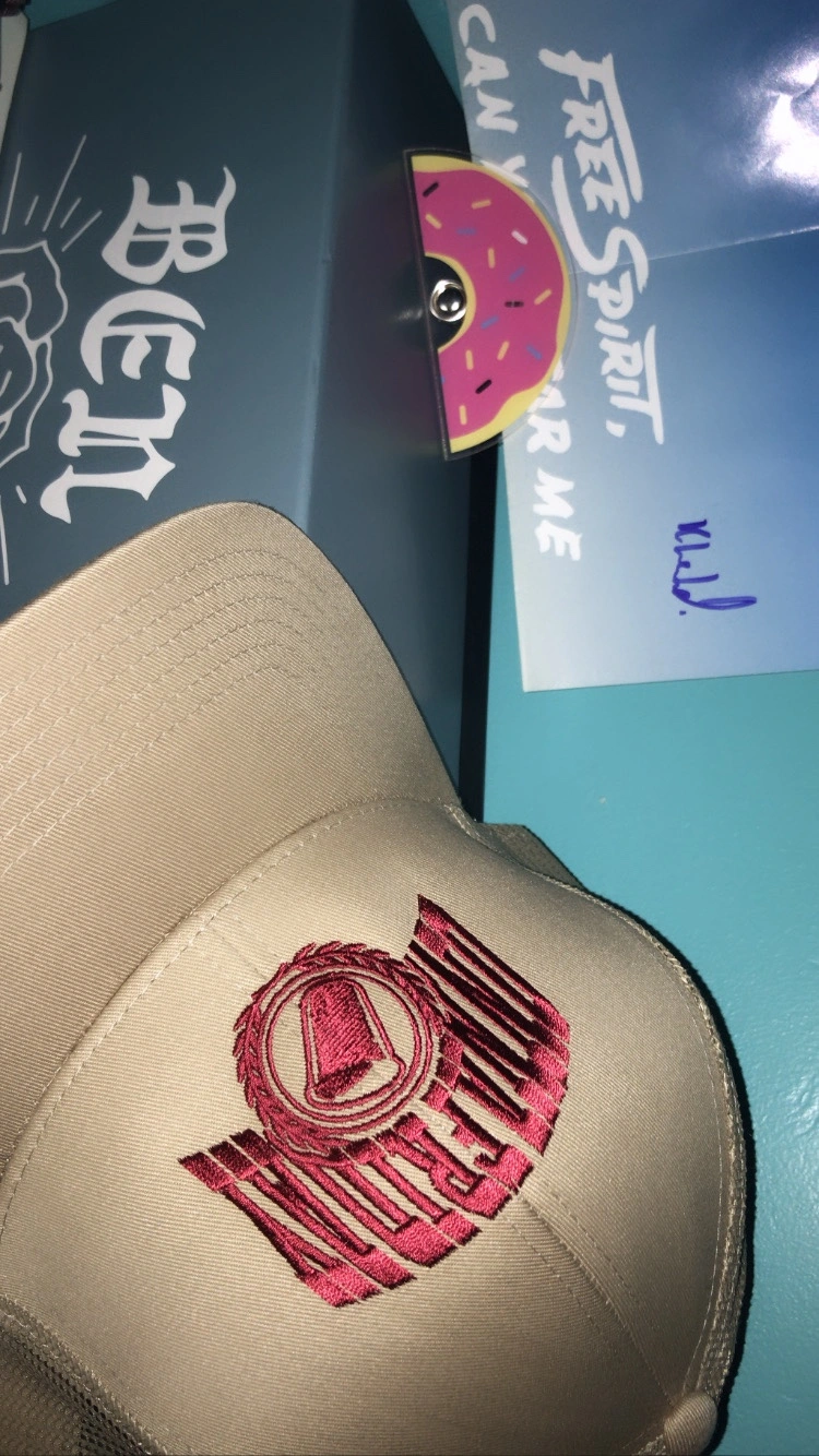 Tan colour with red embroidered logo.Onnafriday Ping pong SnapBack with mash and adjustable strap