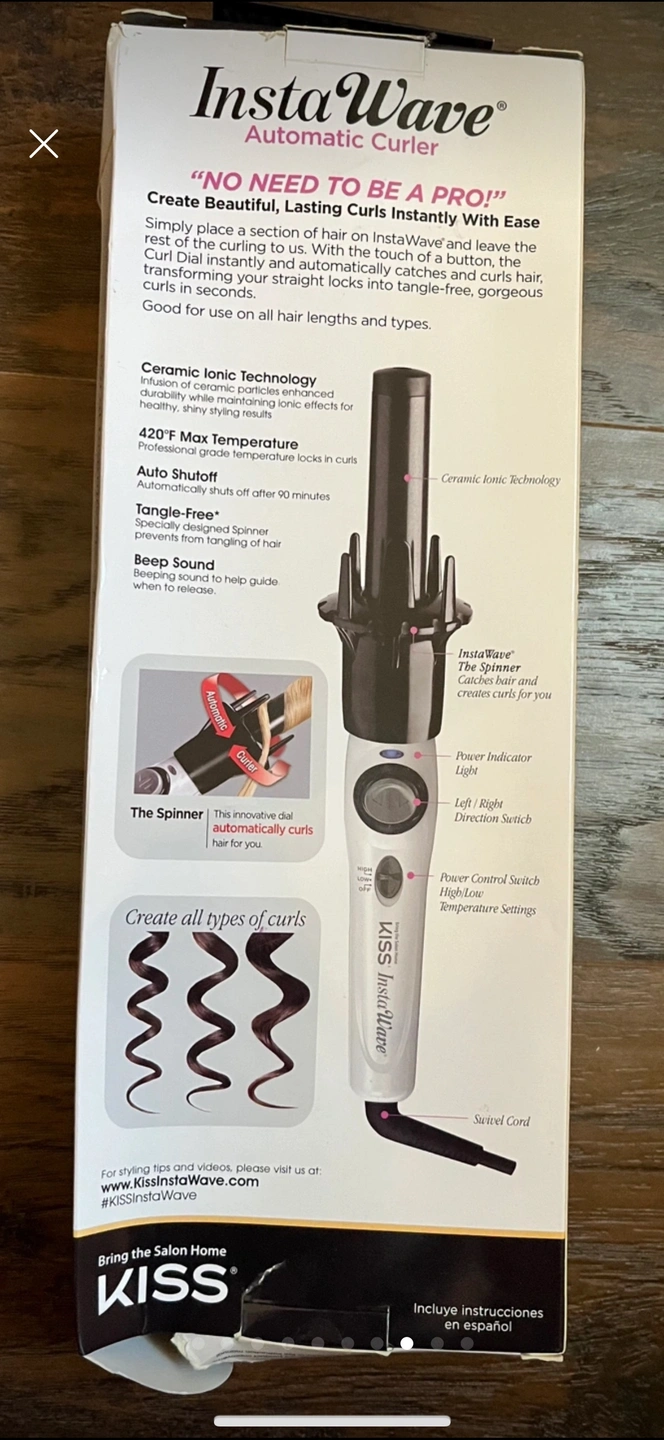Only used this only once like new Conditions.Only thing is that the box is Damaged. Kiss Ceramic Instawave automatic hair curler is the perfect styling tool for those who just can't style with conventional curling irons and wands.