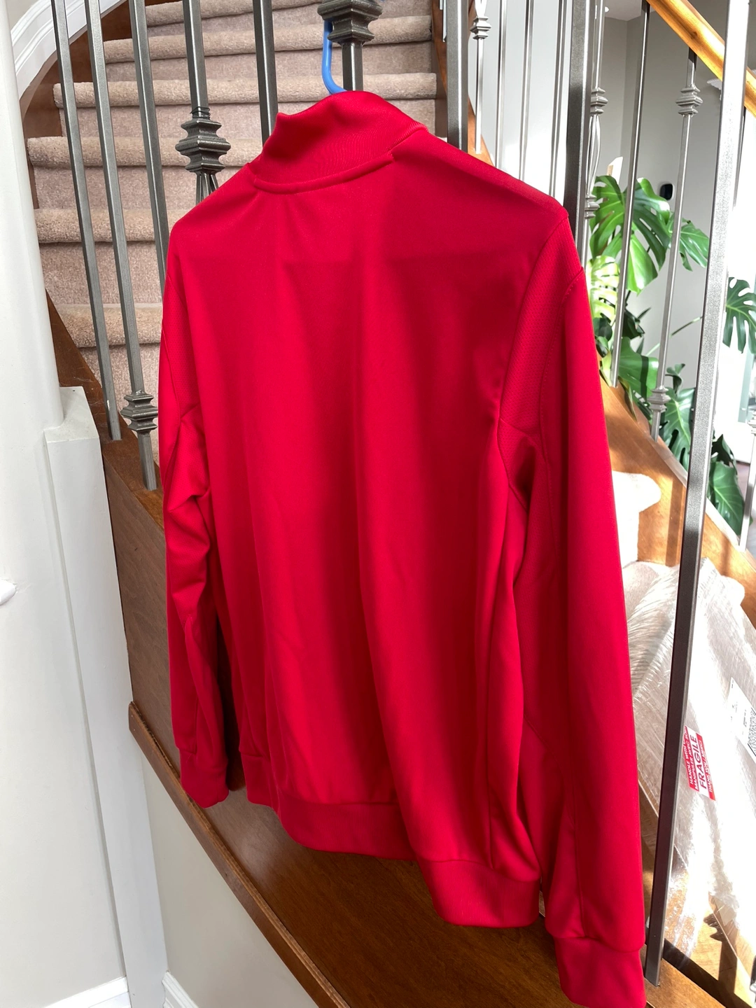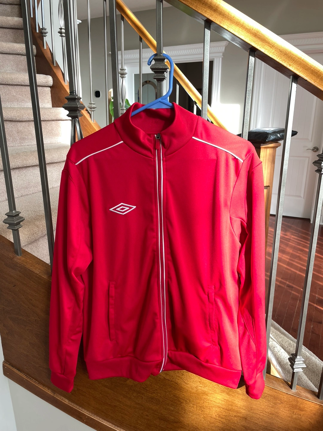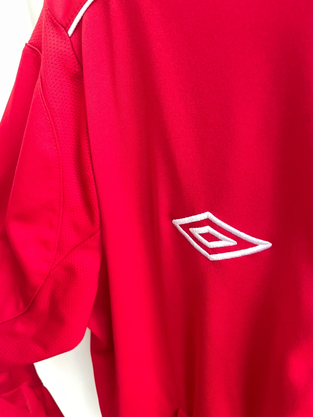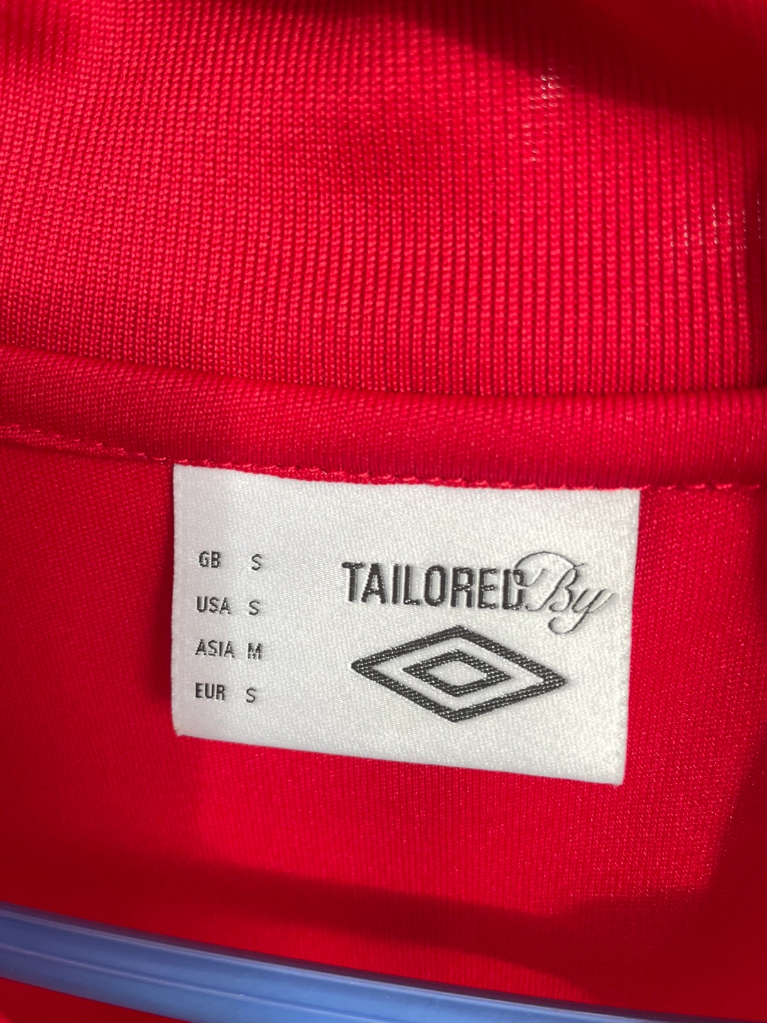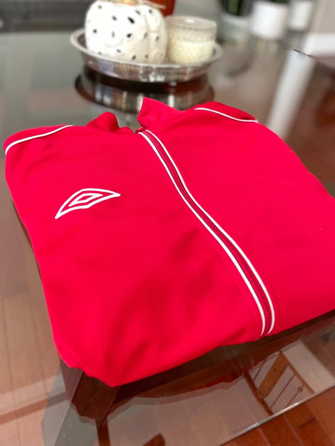 Umbro (tailored by Umbro) full zip warm up track jacket. Red in colour. Women’s size Small.